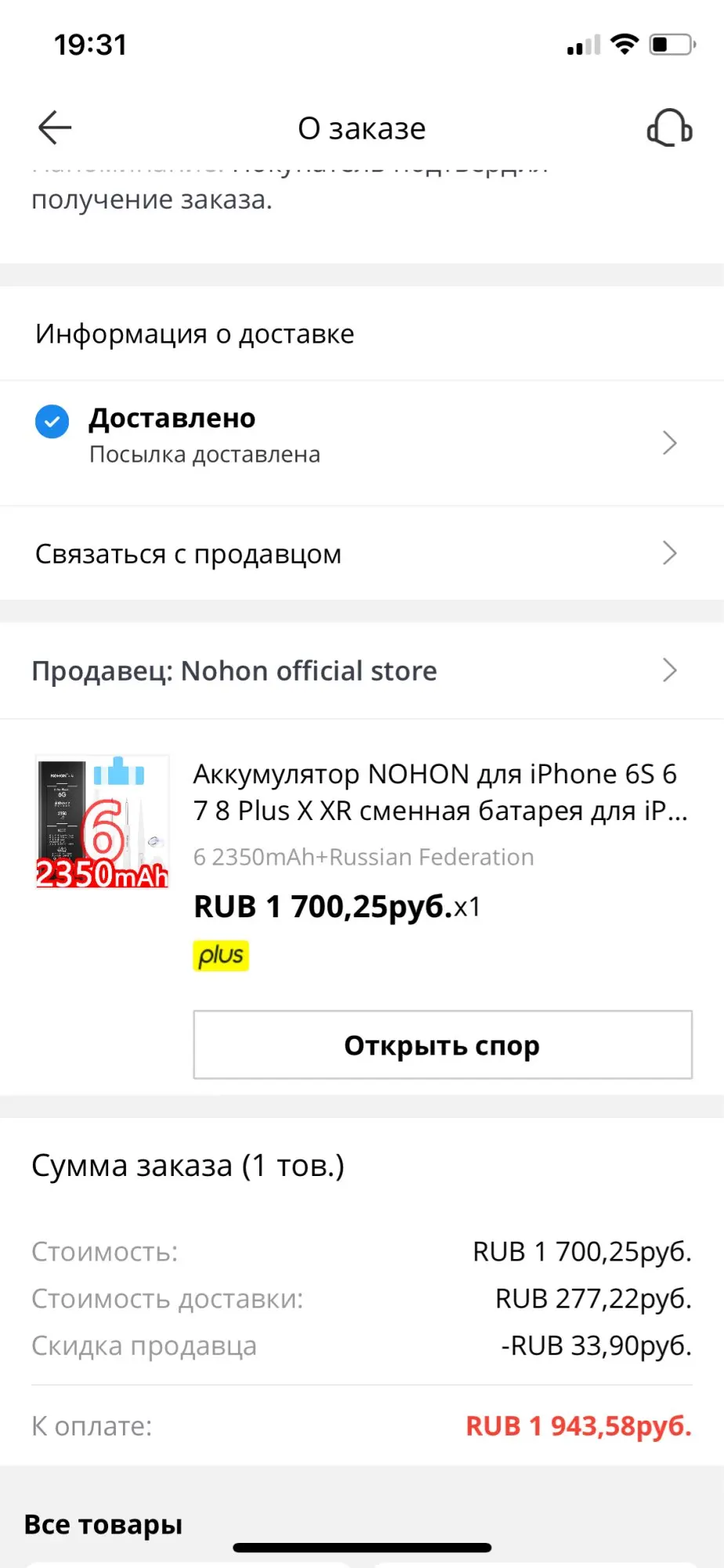 Страна: RU Color: 6S Plus 3480mAh Ships From: Russian Federation Доставка: CN_OVERSEA_GD 11.09.2021