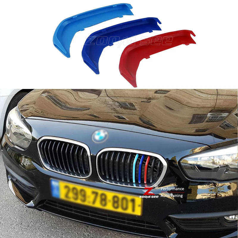 M Стайлинг автомобиля Передняя решетка Мотоспорт полоски гриль покрытие наклейка для 2015-2018 BMW 1 серии F20 F21 116i 118i 120i (11 решетки)