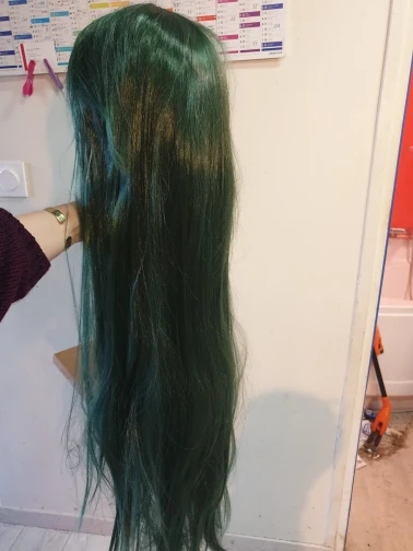 Это именно то, что я ожидала. Цвет яркий, волосы длинные, и парик отлично подходит. Вопрос только в том, что парик из синтетических волос, поэтому его легко завязывать.