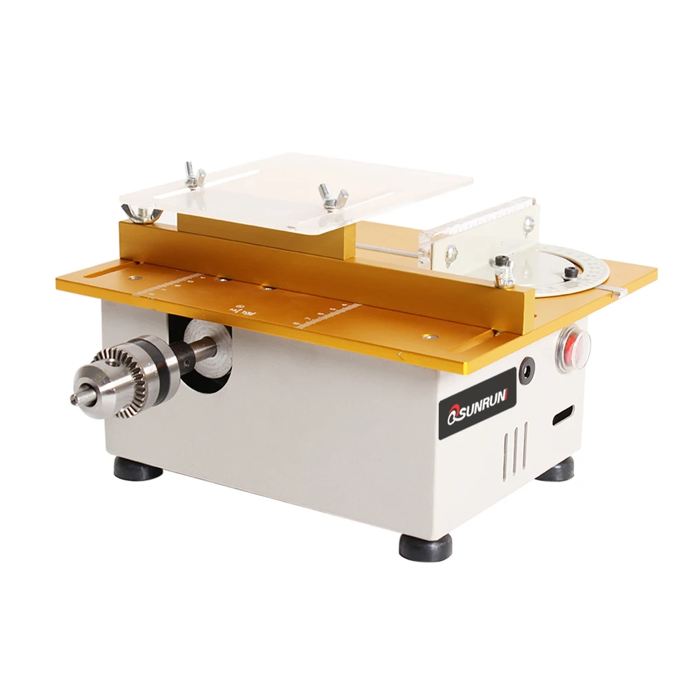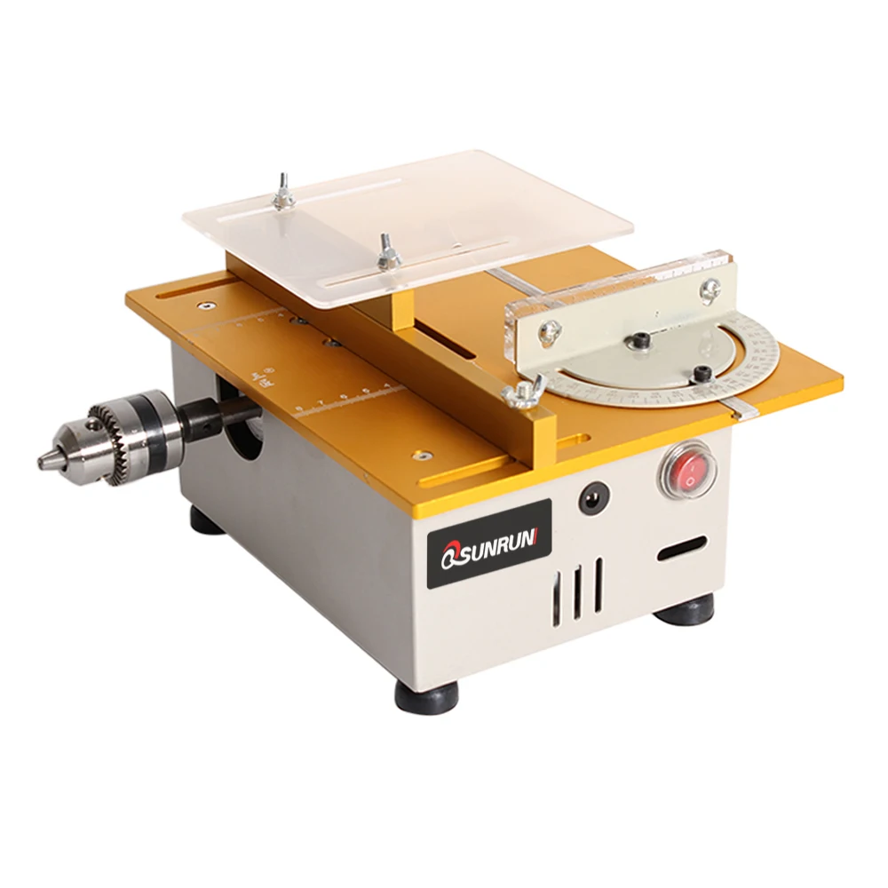 Вы поклонники моделей или эксперты? Мечтали ли вы когда-нибудь иметь удобную многофункциональную настольную мини-пилу для резки/полировки/сверления материала модели с низким уровнем шума и высокой скоростью резки. Пока эта мини-Настольная пила приносит вам надежду в реальность. Unibody 3 мм стальная рама thich и панель из алюминиевого сплава с двигателем типа 775 с высоким крутящим моментом, максимальная скорость вращения до 7000 об/мин, обеспечивающая сверхвысокую мощность реза, но низкий уровень шума. Стол для резки оснащен линейкой, что соответствует вашим потребностям и безопасности. Поставляется вместе с сверлильным патроном B12 с зажимной способностью 0,6-12 мм может использоваться в качестве электрического полировщика или сверла при установке соответствующих деталей. Он оснащен 7-классным блоком питания с регулируемой скоростью, что позволяет легко регулировать скорость вращения, лучший выбор для самостоятельного изготовления моделей.