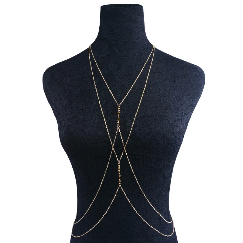 Богемная медная цепочка с акриловыми бусинами, подвеска, ожерелье, грудь, цепь для женщин, летние пляжные/вечерние украшения для тела, бикини