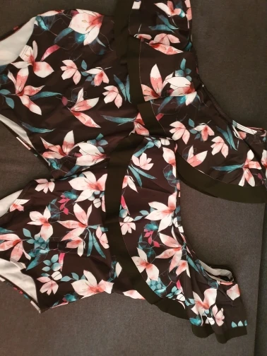 Купальник яркий, сшит хорошо, нет торчащих ниток, нет грубых швов. Но почему-то оказался мне большеват, буду заказывать на размер меньше.