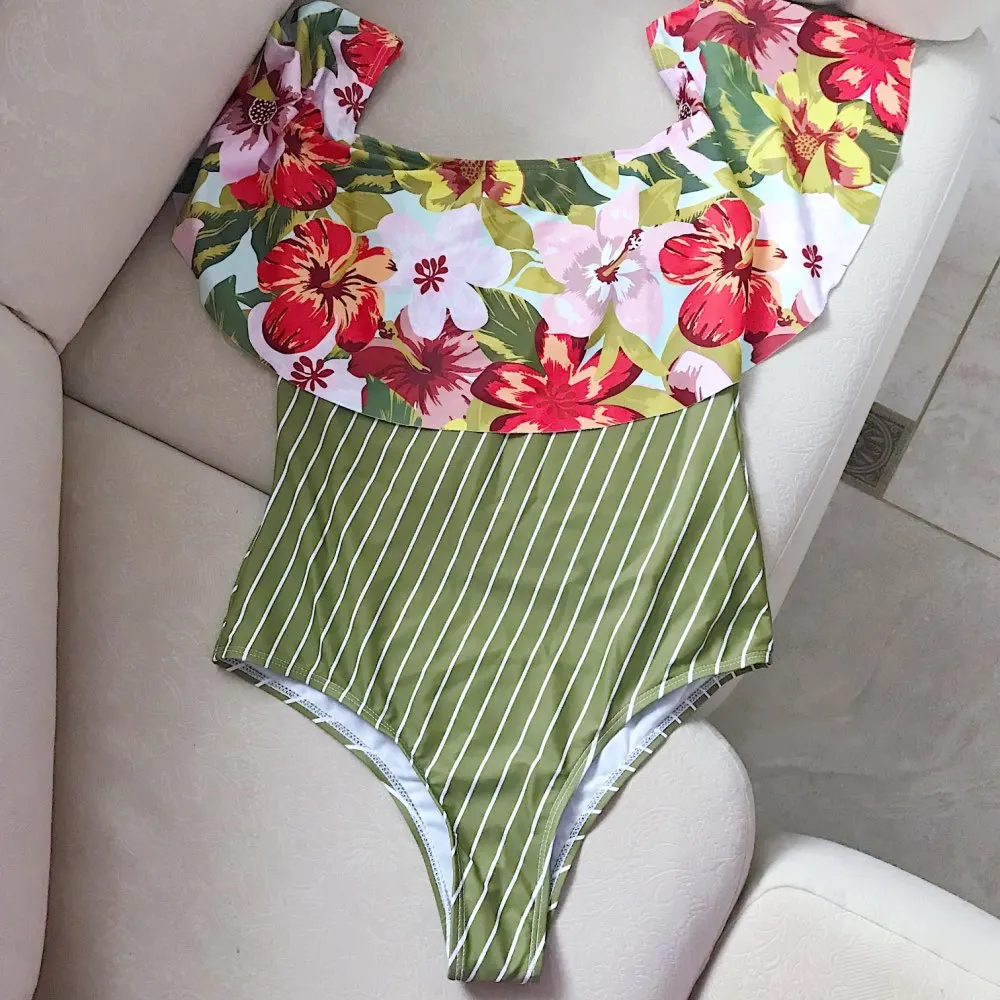 Новинка 2022, пикантная однотонная одежда для плавания с открытыми плечами, Женский цельный купальник, женский купальный костюм, монокини с оборками, одежда для плавания XL
