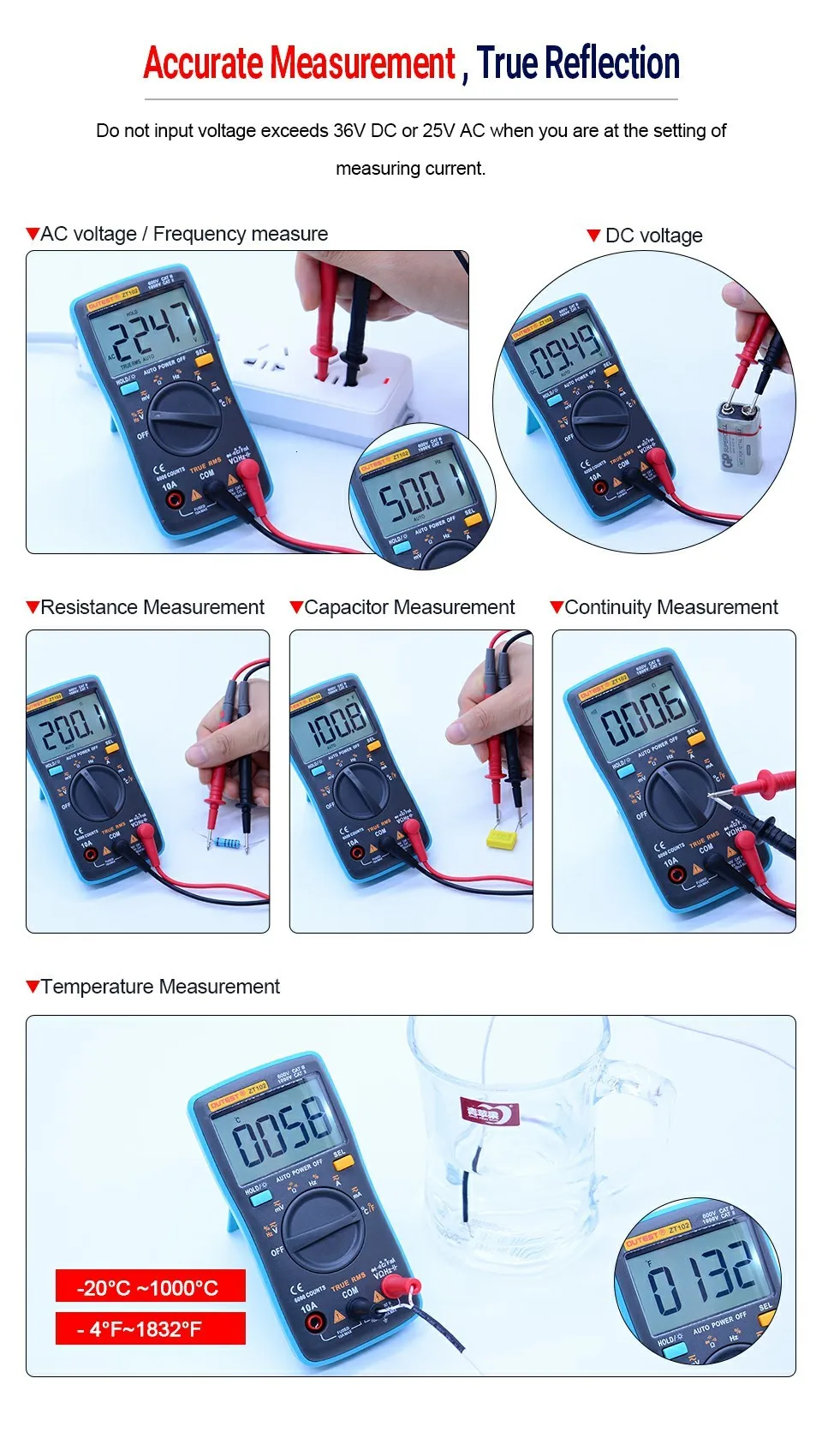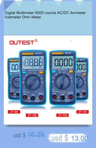 OUTEST ZT102 Цифровой мультиметр 6000 отсчетов AC/DC преобразования Амперметр Сопротивление Емкость тестер температуры с подсветкой