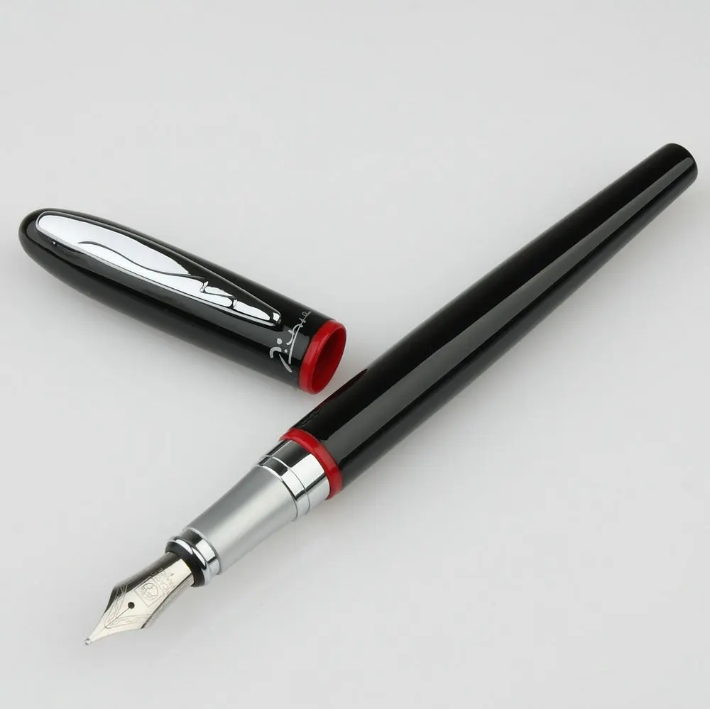 Чернильная перьевая ручка Picasso 907, черная и серебряная, иридиевая, 0,5 мм, Монмартр, красное кольцо, перо B, перьевые ручки, высокое качество