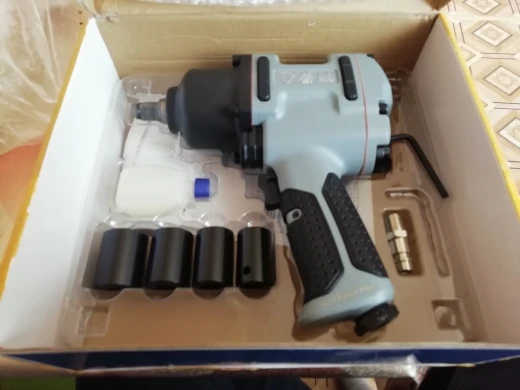 Отличный Гайковерт. Мощный. колесные болты за секунду откручивает. Сидит в руке идеально, чувствуется что качественное.Подключил на шланг 6 мм. работа без проблем. Ржавые болты на реактивных тягах классика откручивает без проблем. покупал для гаража, отличный помощник.Продавец красавчик, рекомендую.