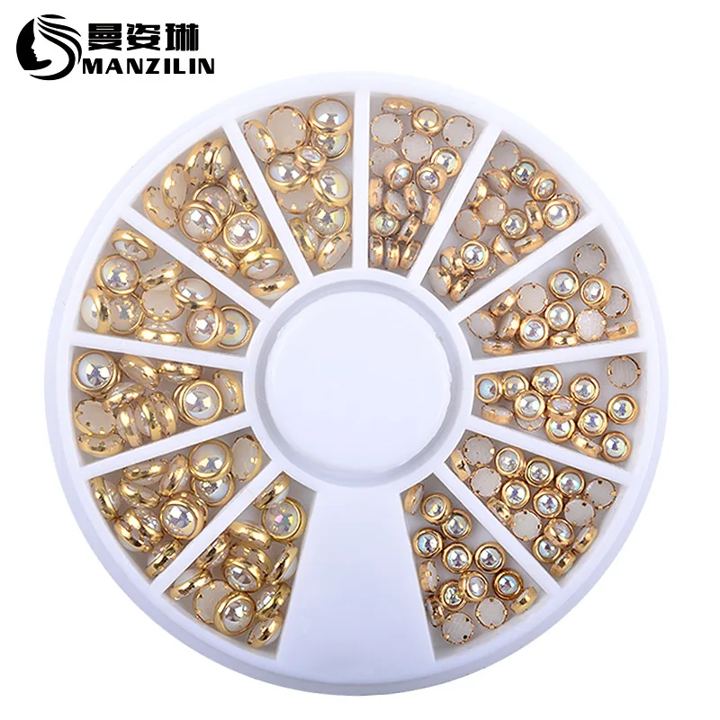 3d Блеск для ногтей Стразы для упаковки жемчужин AB Красочные 2 мм 3 мм колесные золотые металлические шпильки DIY красивые украшения для ногтевого дизайна