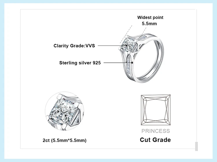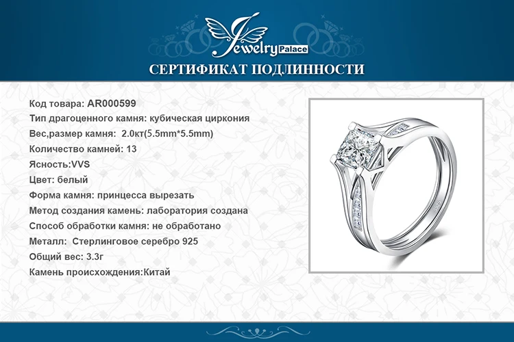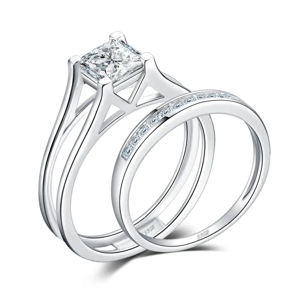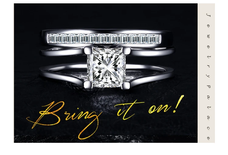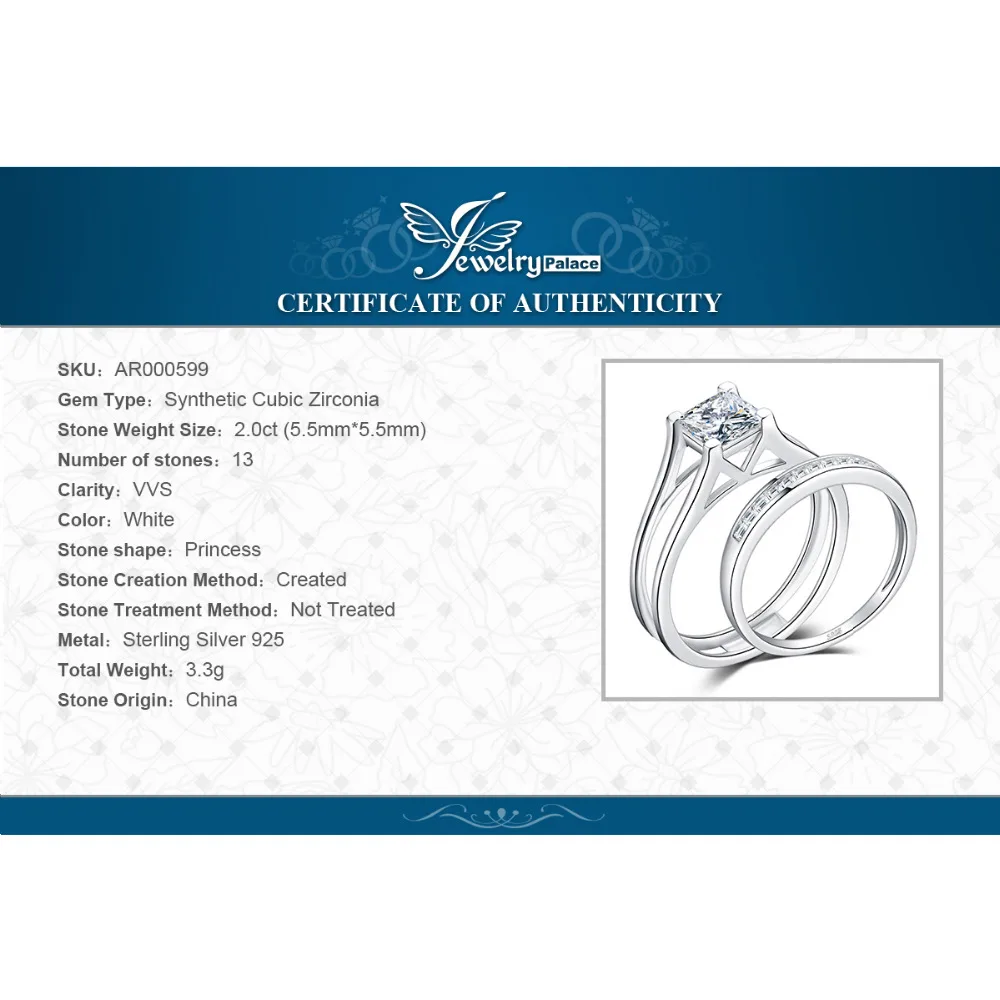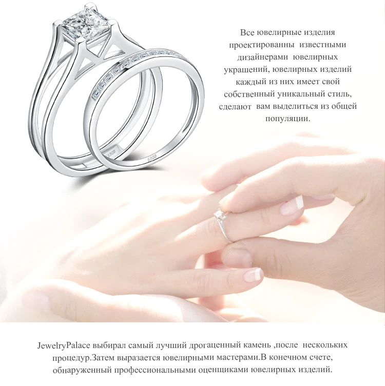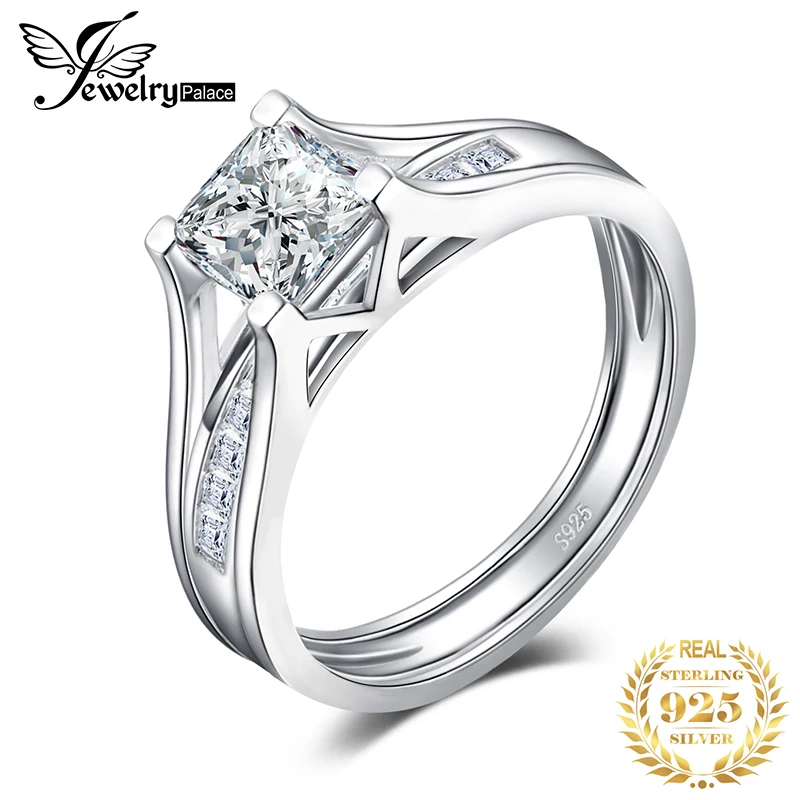 JPalace 2ct принцесса обручальное кольцо Набор 925 серебряные кольца для женщин обручальные кольца канала свадебный набор серебро 925 ювелирные изделия