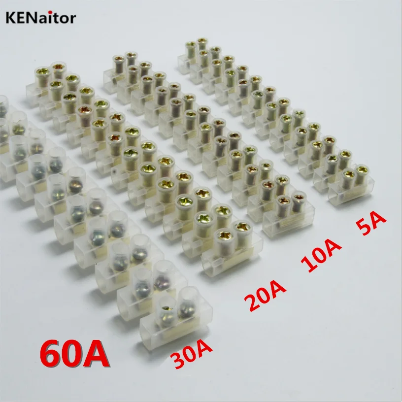 5A 10A 20A 30A 60A 12-позиционный двухрядный винтовой клеммный блок огнестойкий нейлоновый клеммный блок соединитель