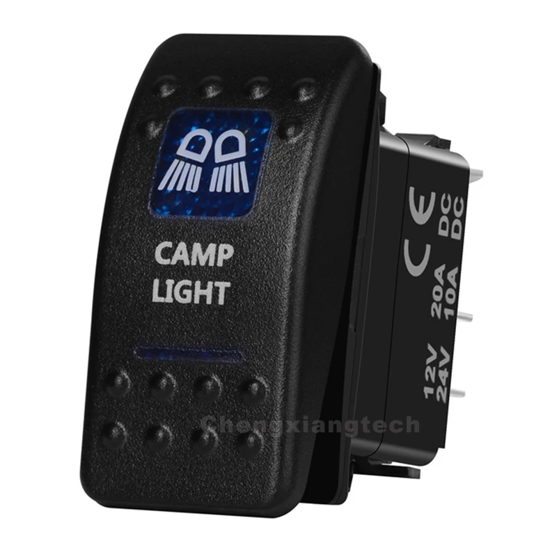 Синий светодиодный 5-контактный переключатель on-off SPST для автомобиля, лодки, кемпинга, световая балка, клавишный переключатель, водонепроницаемый IP66 12 В24 В, рыболовный переключатель морского класса