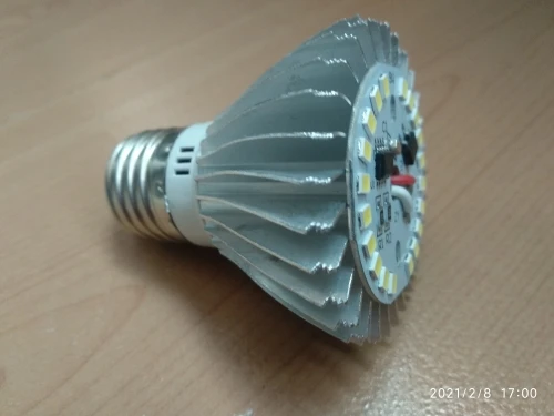 Плохой и опасный светильник. 220 В идет непосредственно к драйверу, нет изоляционного трансформатора-корпус лампы проводящий, и это может привести к электрическим ударам. Драйвер (1) не пульсирует, имеет низкую эффективность, нет электролитического конденсатора для хранения, что приводит к большим пульсациям света. Плата без винтов, криво приклеивается к силиконовому герметику (2) -тепло плохо переносится к корпусу лампы, в результате, через 10 минут работы, потребление энергии уменьшается с 9 до 6,8 Вт. Световой метр показывает, что по сравнению с обычной лампой 9 Вт Световой поток этой лампы почти в 2,5 раза меньше! На корпусе лампы нет знака производителя-эта лампа не монтируется на заводе. Я не рекомендую покупать его.