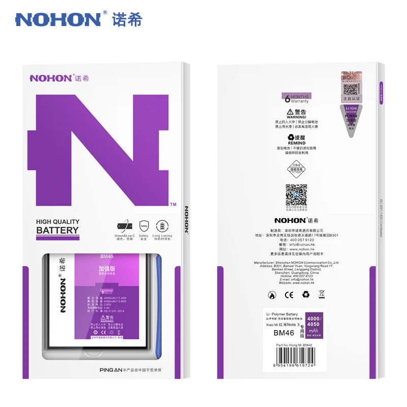 Аккумулятор NOHON сменный для Xiaomi Redmi Note 2 3 5A 7 8 Pro 4 4X 5 8T BM45 BM46 BM47 BN31 BN41 BN43 BN45 BN46 BN4A сменный литий-полимерный батарея мобильного телефона