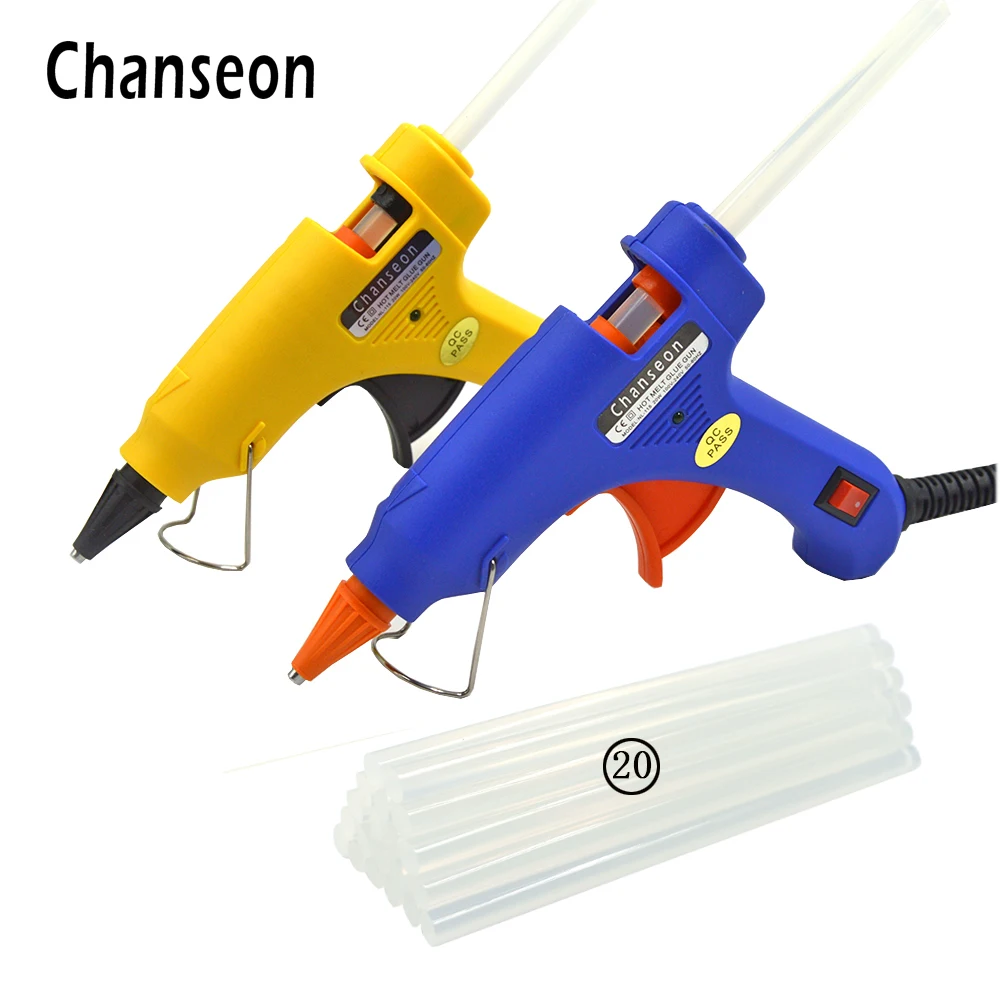 Термоплавкий клеевой пистолет 20 Вт с 20 шт., белый 7 мм, самодельный клеевой карандаш, высокотемпературный нагреватель, ручной инструмент, промышленные мини клеевые Инструменты для ремонта термо