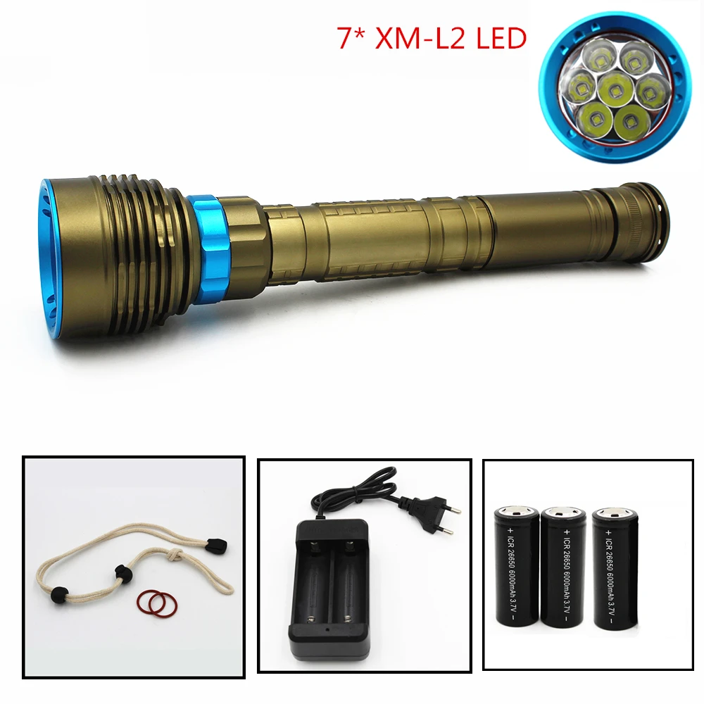 Водонепроницаемый светодиодный фонарик для дайвинга 7 x CREE XML-T6 XM-L2 8400LM 3 режима 70 Вт под водой 100 м ффонарь 18650 26650 зарядное устройство