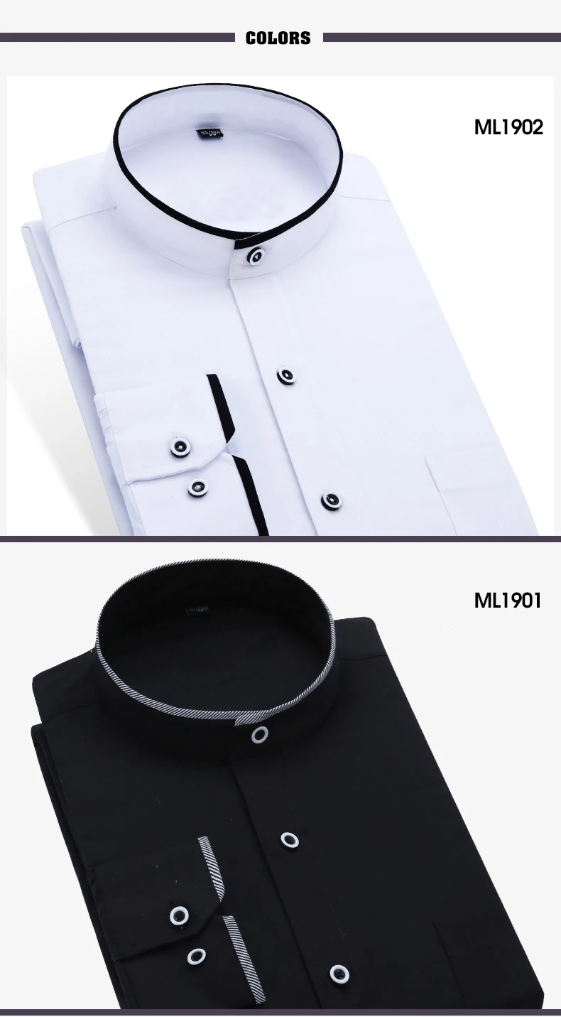 Мужская деловая рубашка с воротником-стойкой, белаячерная однотонна...