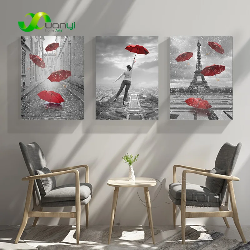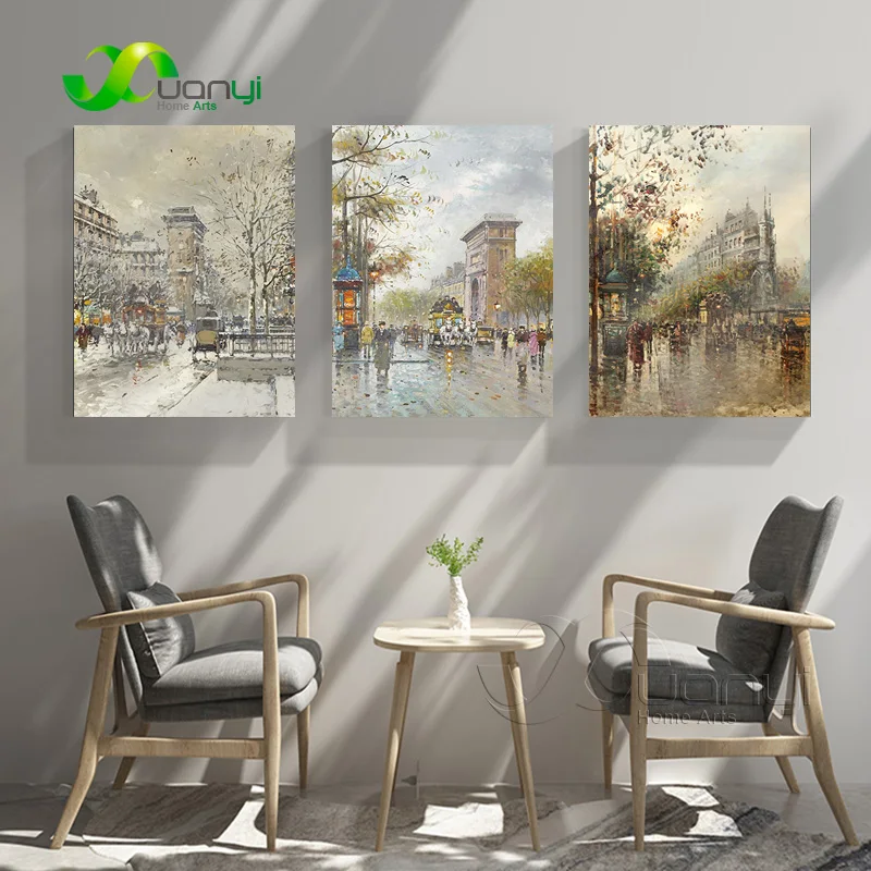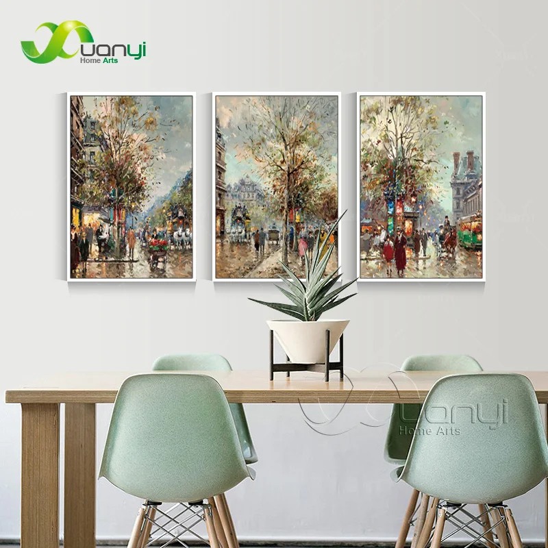 Картина маслом на холсте с изображением улицы, 3 панели, Абстрактный тип, домашний декор, Настенная картина для украшения гостиной, картина без рамы