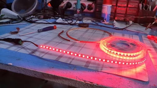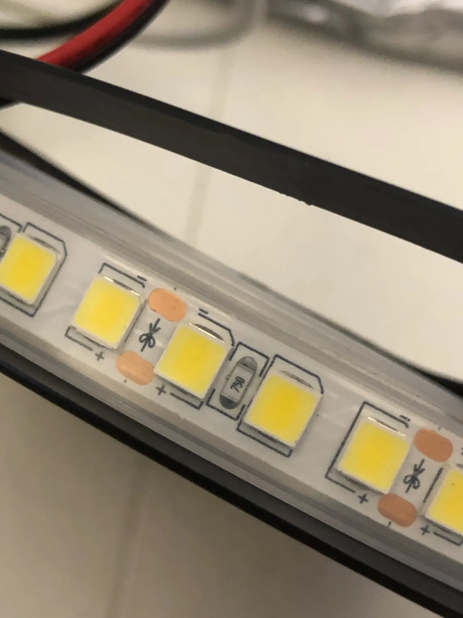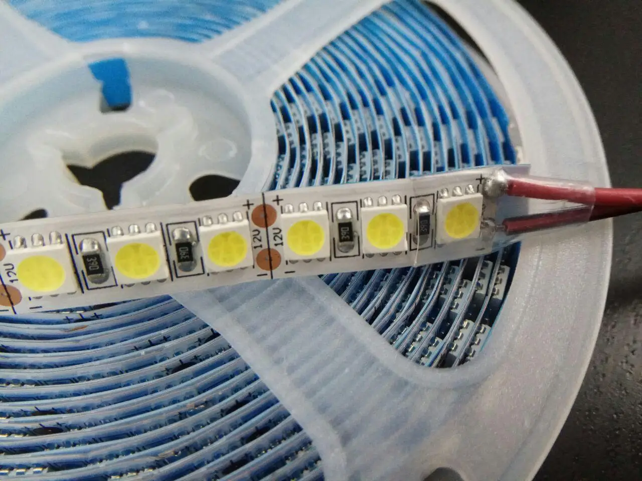 Рабочие , припаяны , на 240св. на метр, правда криво , при нарезке надо быть аккуратным.