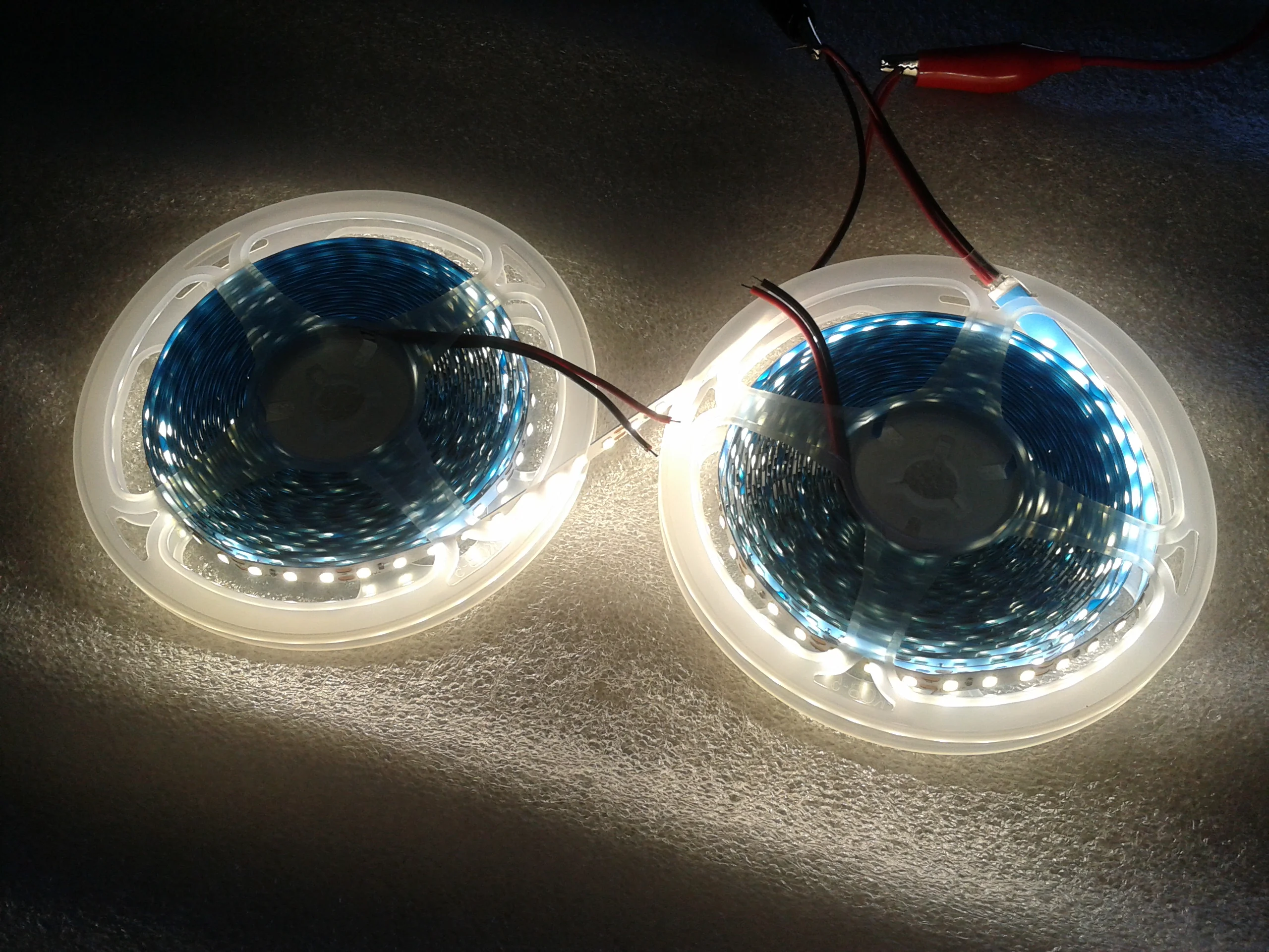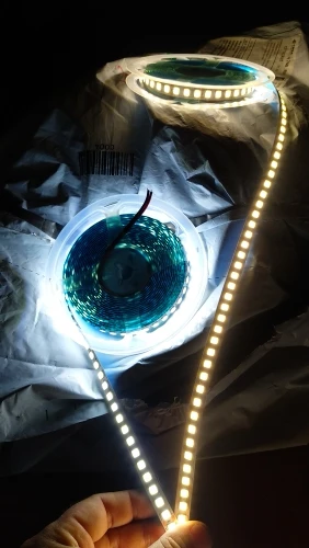 Долго выбирал себе свет в гараж холодный, нейтральный или тёплый, мне больше нравится нейтральный Но в этой ленте он чуть-чуть желтоватый поэтому решил разбавить холодным. буду клеить две ленты холодный и нейтральный. Ленты с 120 диодами греются сильно, поэтому необходим охладитель. буду клеить на профиль из гипсокартона.