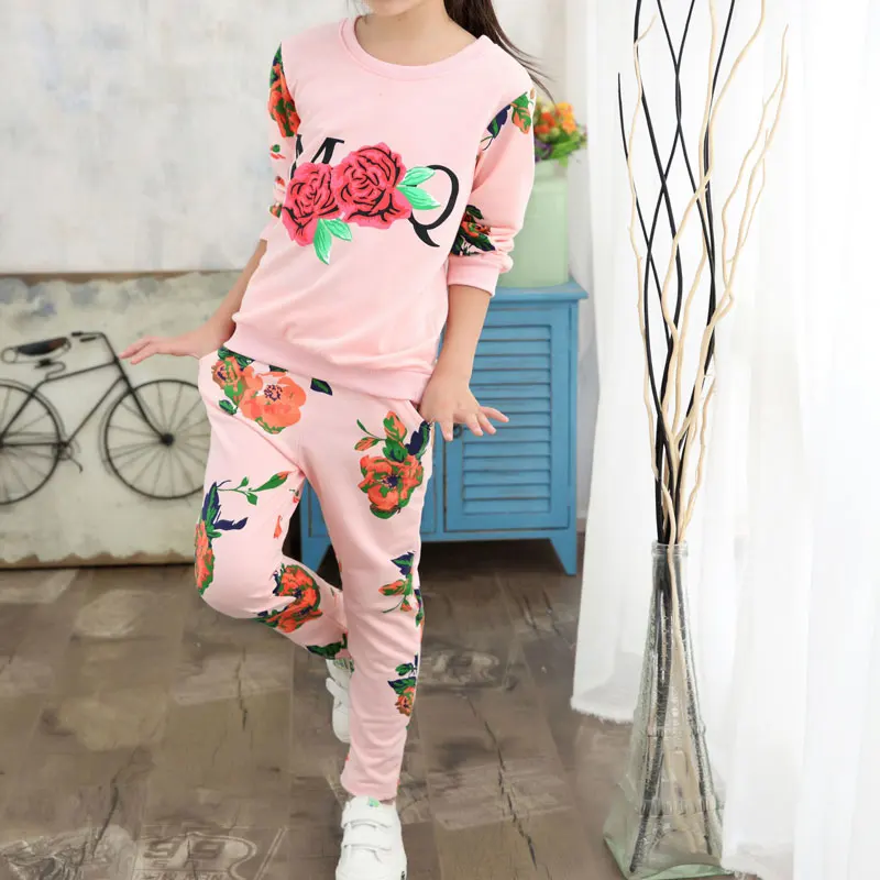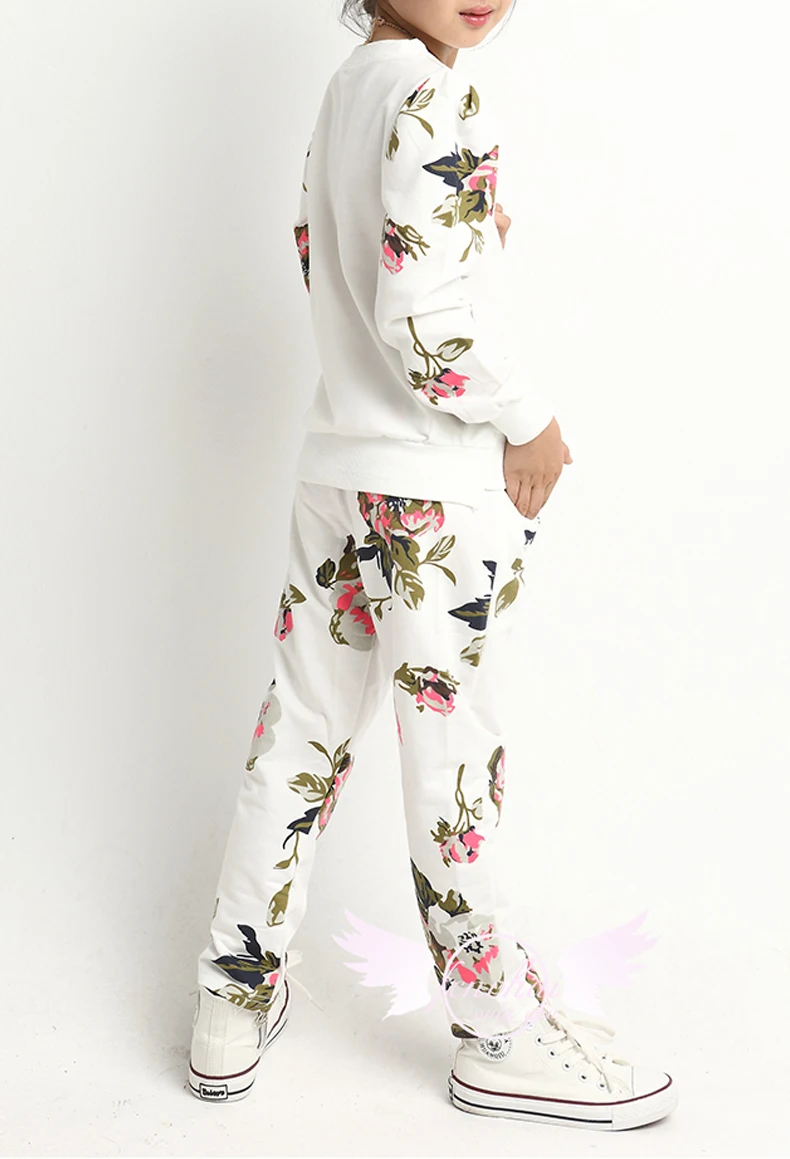 Детский костюм для девочек, хлопковый спортивный костюм с цветочным принтом, свитшот + штаны, Рождественский костюм, зима 2019