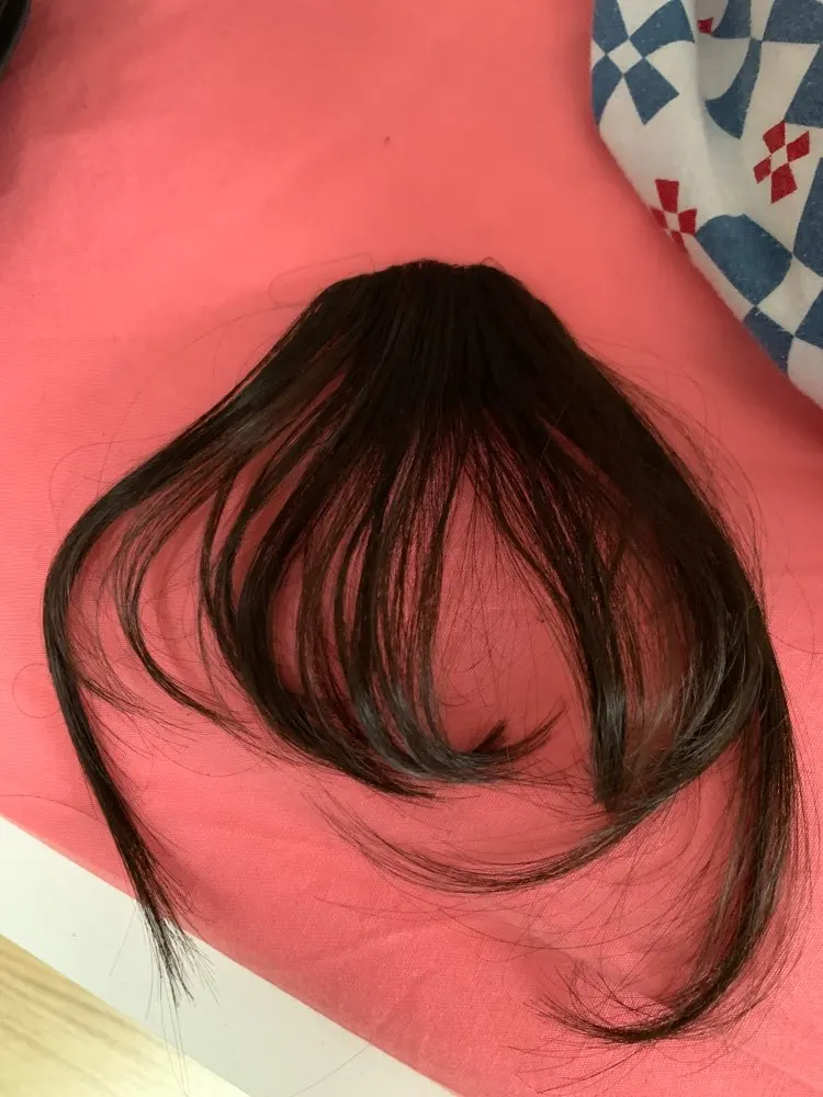Классная челка за свои деньги, выглядит натурально, цвет подошёл, видно место заколки, но не сильно. Продавец положил наклейки, приятно )
