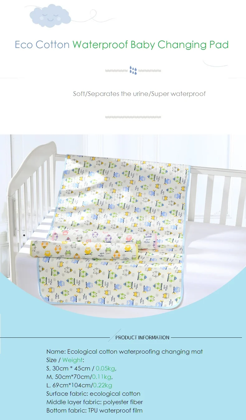 Коврик для пеленания детский, водонепроницаемый, из экологичного хлопка
