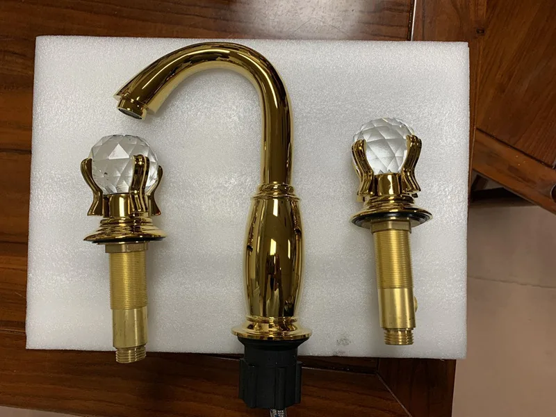 Роскошный смеситель для ванной комнаты с двойной хрустальной ручкой, Золотой смеситель для раковины, смеситель с двойной ручкой, Золотой смеситель кран горячей и холодной воды