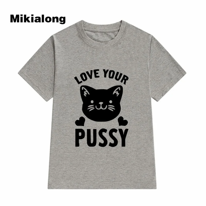 Mikialong 2017, милая одежда для пар, футболка с рисунком кошки, с надписью LOVE YOUR PUSSY, женские футболки ulzzang harajuku, топы для женщин