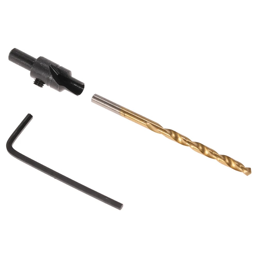 Набор из 6 предметов включает 5 бит для сверления пилотных отверстий для размеров винтов № 5 #6, № 8, № 10 и № 12 и 1 шестигранный ключ.