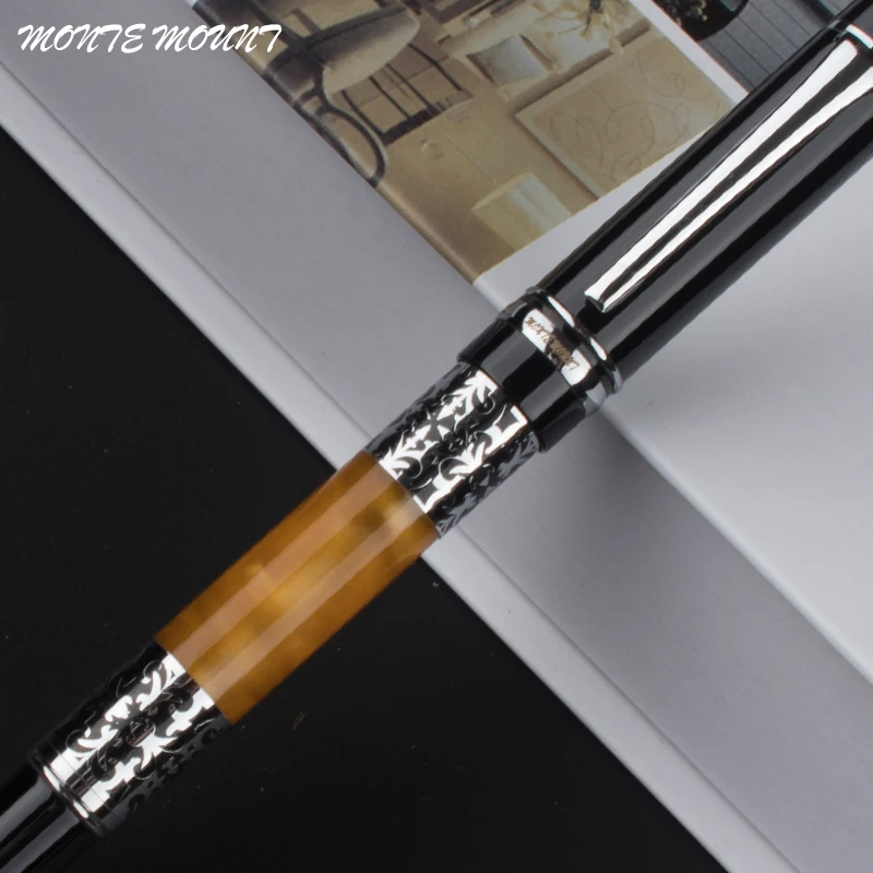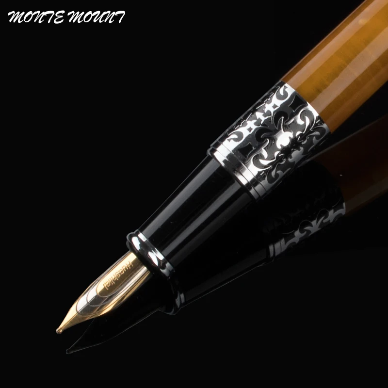 Роскошные черно-оранжевые ручки для письма, Книжный червь 675, Серебряный цветок, янтарная целлюлоидная перьевая ручка, офисные и школьные принадлежности