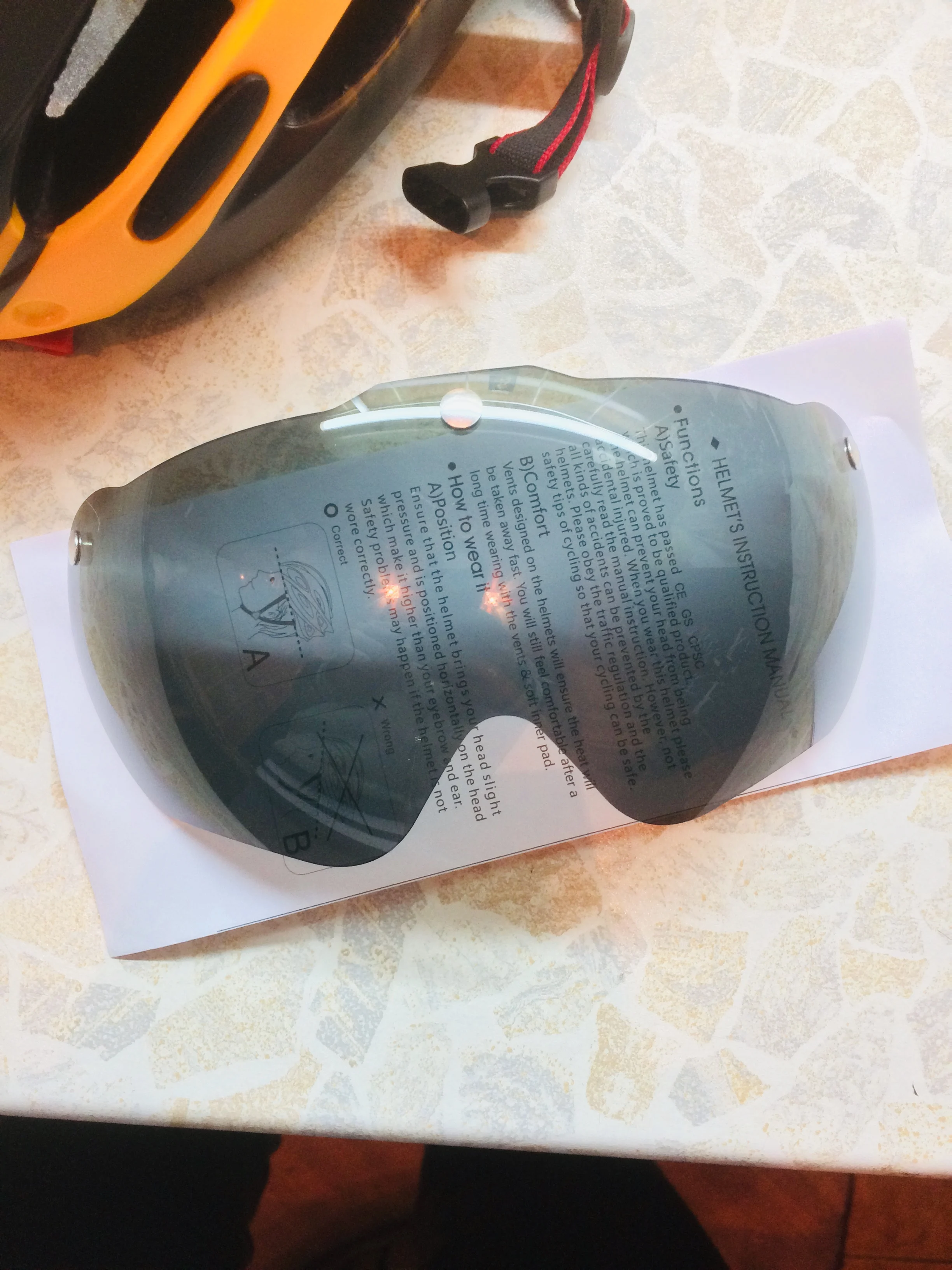 Шлем действительно соответствует буквенному описанию, прибыл очень быстро (менее 1 месяца), только деталь беспокоила меня вопрос: плохое качество пены внутри шлема, но в противном случае все очень хорошо сделано, настоятельно рекомендую этот продукт. Оранжевый цвет в комплект не входит козырек, только объектив.