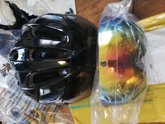 Мой первый шлем. Получил в течение нескольких недель в очень солидной амортизирующей упаковке. Шлем можно отрегулировать в соответствии с размером головы. Очень легкий шлем. 2 также поставляется с пластиковыми не стеклянными фасадами, которые крепятся к шлему одним простым щелчком и удалением, а также просто одним нажатием магнитов. Подходит для маленьких спортивных очков binoculair. Не подходит для высоких бинокулярных очков. Я могу посоветовать вам этот продукт.