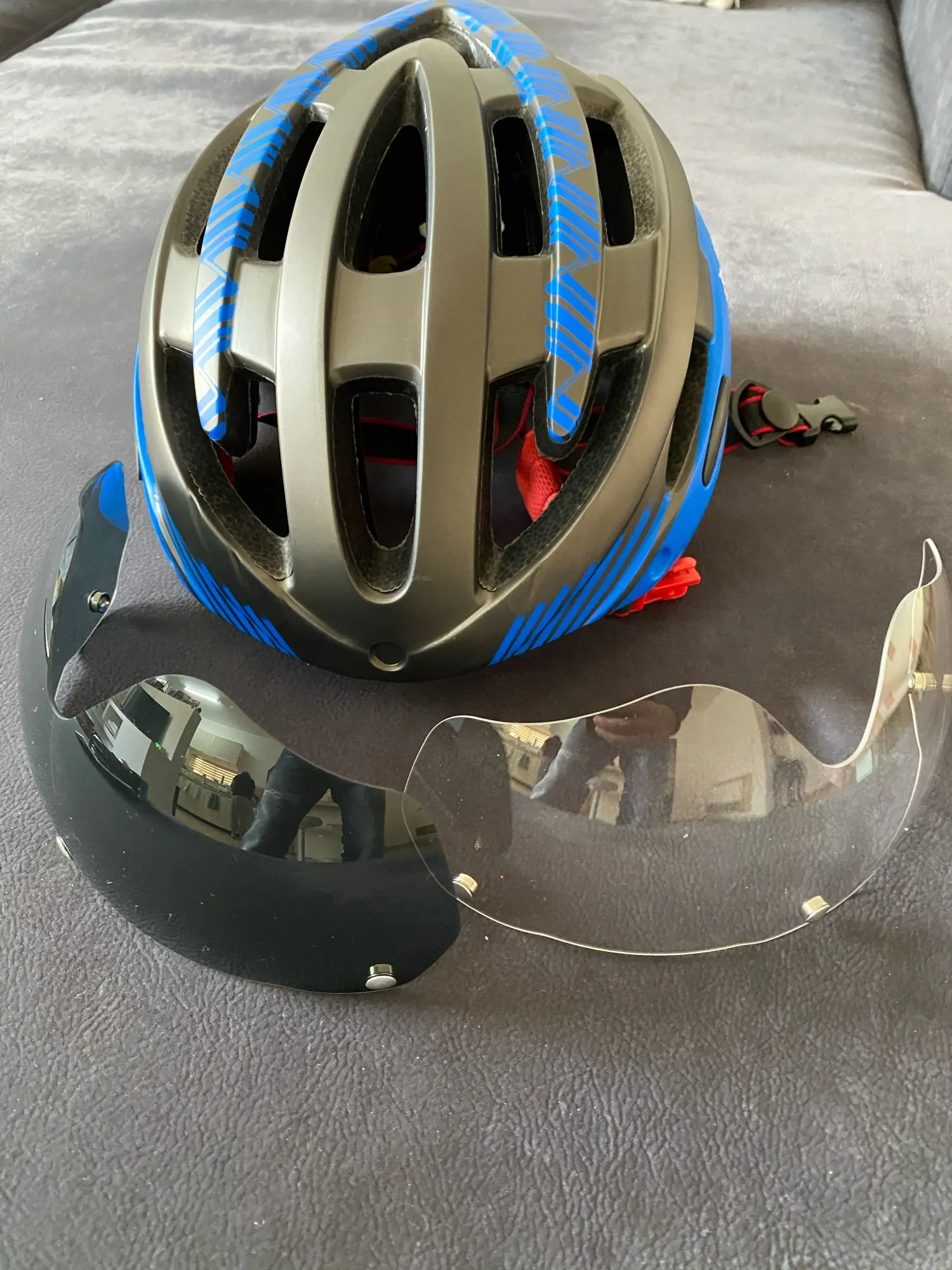 Шлем очень хороший. Солнцезащитный козырек также имеет магниты. Он очень хорошего качества.
