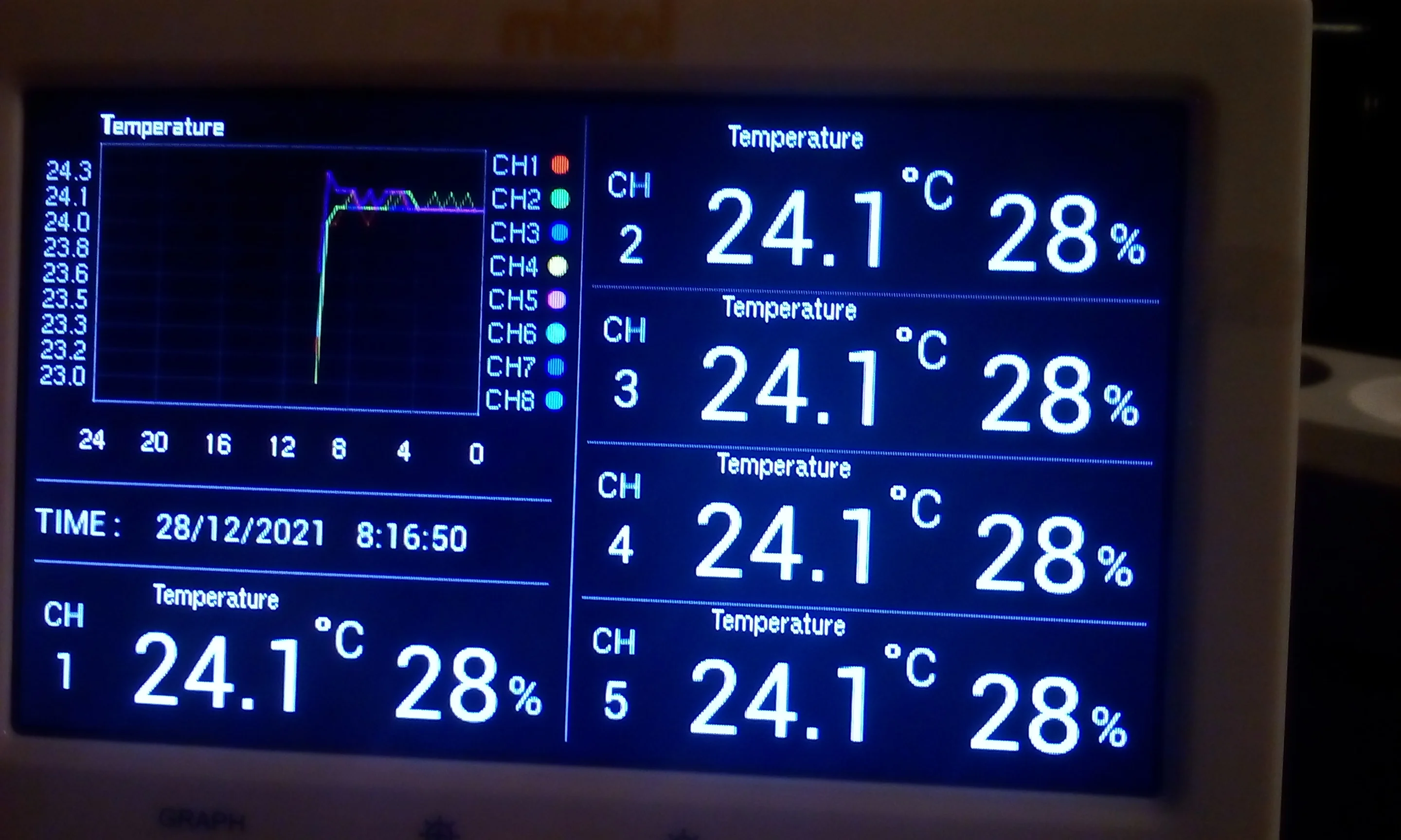 Купил эту модель, так как она будет записывать температуру и влажность. Экран меньше, чем я ожидала, но легко читается и делает работу. Эффективное включение устройства и включение батарей во все внешние датчики (после изменения выключателя для каналов) все работает. Когда все датчики были в одном месте, все они сообщали о очень похожих температурах и относительной влажности, так что все, как кажется, откалиброваны на одинаковые значения. Я использую sd-карту для записи данных, так как хочу получить представление об уровне влажности в моем доме и под ним. Также можно настроить устройство для отображения точки заземления (журнал это также). Руководство делает достойную работу по объяснению функций, мне также понравился тот факт, что вы могли бы откалибровать датчики (датчик все равно будет читать то же самое, но устройство добавит смещение в значения записи и отображает/записывает это.) Хотелось бы, чтобы они могли ренажировать каналы в программном обеспечении, было бы идеальным тогда. Очень доволен покупкой.