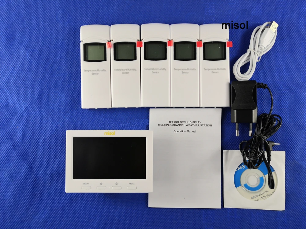Беспроводная метеостанция misolс 5 датчиками, 5 каналов, цветной экран, регистратор данных, Подключение к ПК