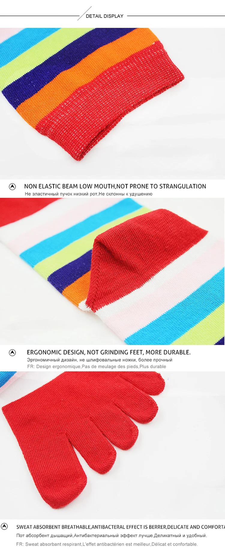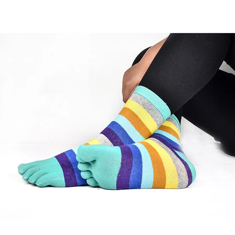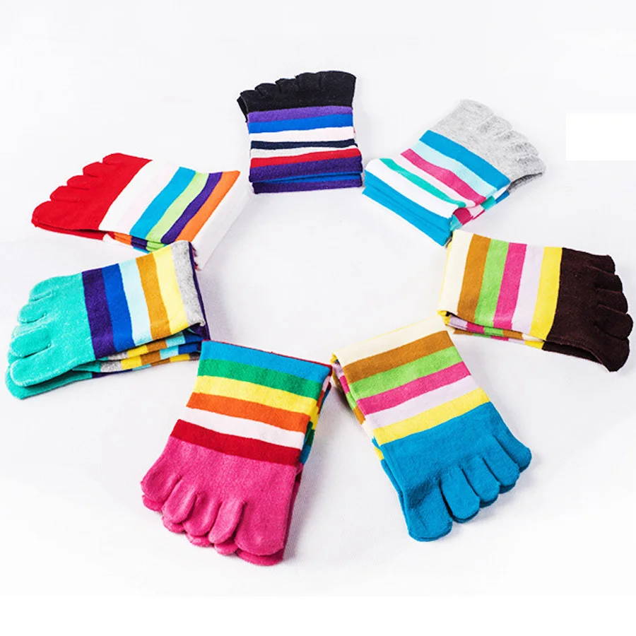 VERIDICAL 5 пар лот, женские носки в яркую полоску, хлопковые носки в радужную полоску, повседневные милые женские носки с пятью пальцами