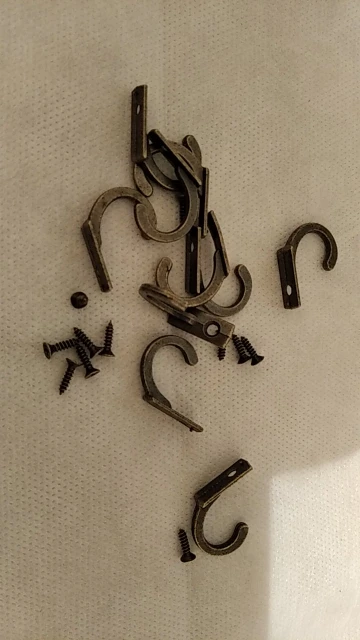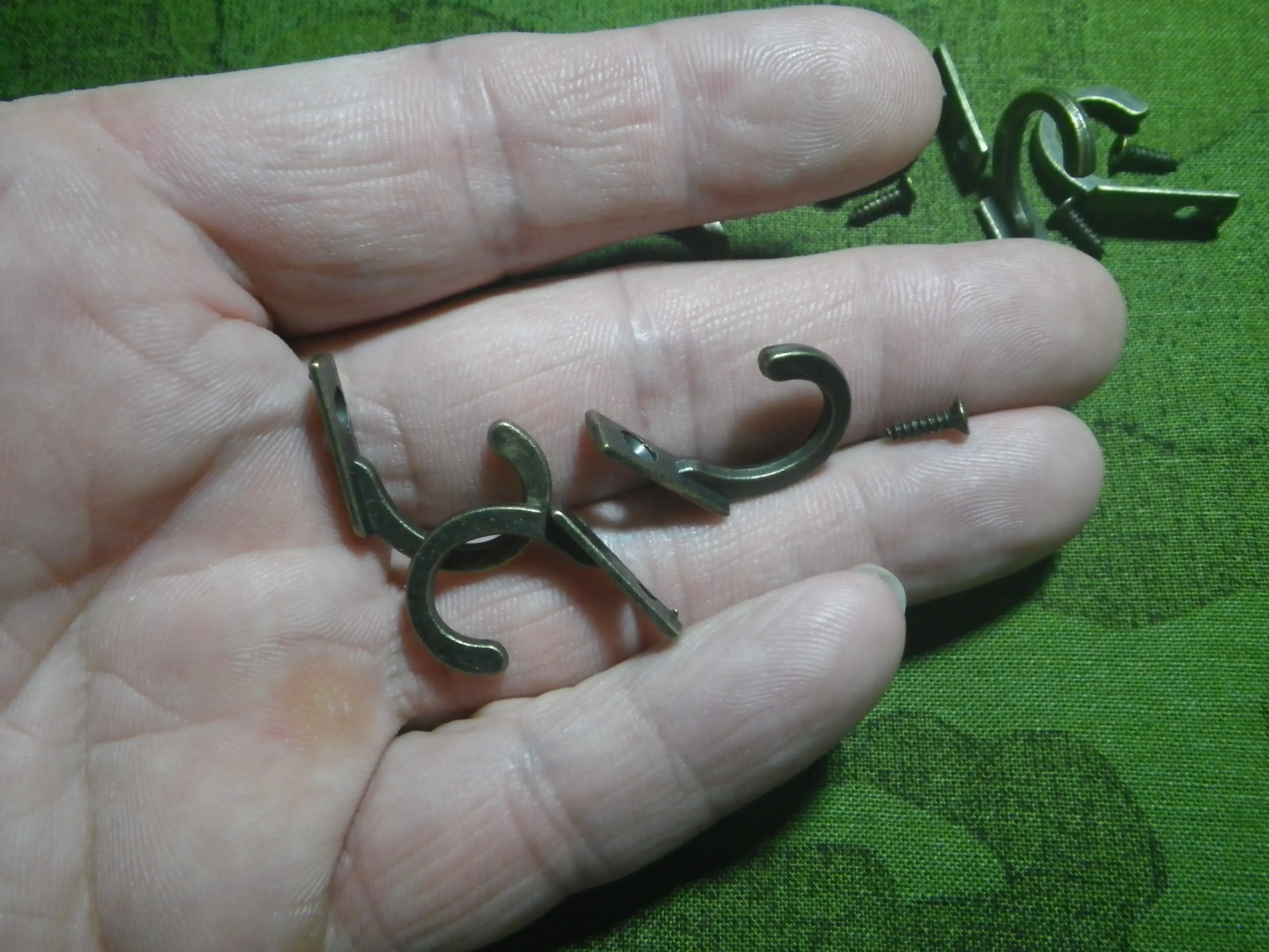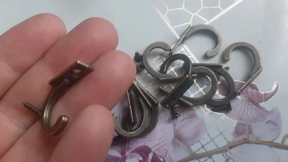 Они маленькие, но идеальный размер, чтобы повесить ключи, маски и т. Д. Поставляется с винтами, продавец отправил винт к основному. Хорошо упакован и очень доволен заказом и бронзовый цвет очень приятный. Спасибо продавцу. Я буду покупать больше