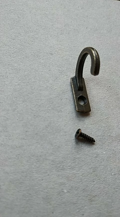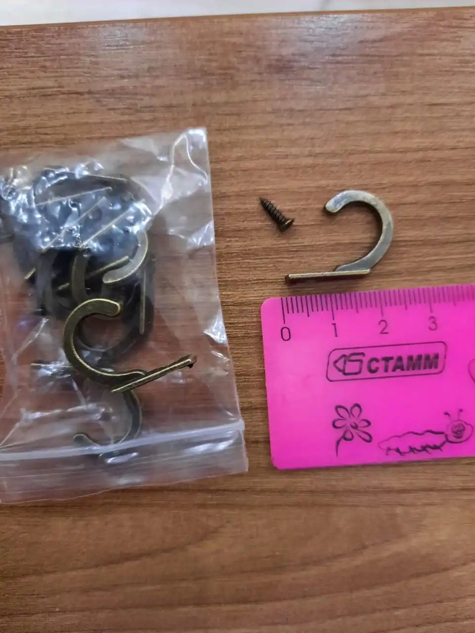 Товар в соответствии с описанием-маленький крючок,в комплекте есть дополнительные шурупы(шурупчики в "бронзе"самые длинные 8мм хорошо садятся на место) Всем довольна,продавца рекомендую.