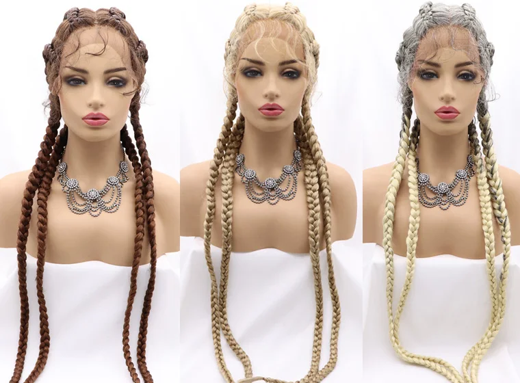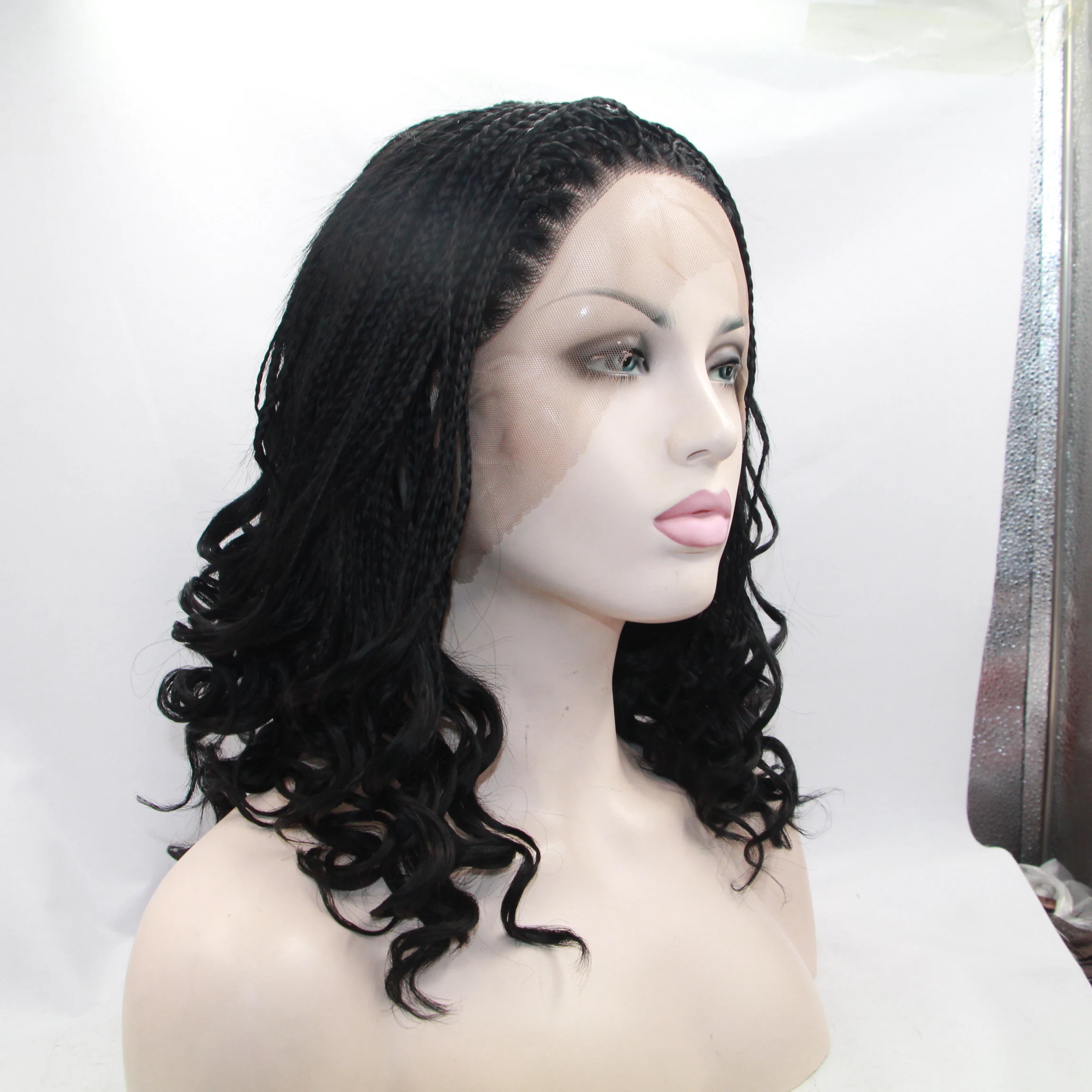Сильвия термостойкие волокна Плетеный парик натуральный черный ящик Плетеный с ребенком волос Синтетические Кружева передний парик для женщин