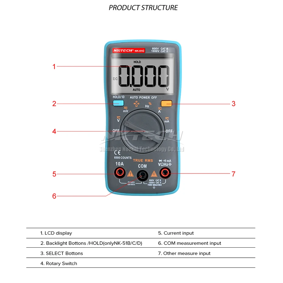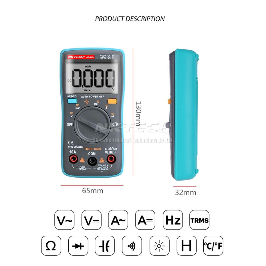 Цифровой мультиметр NKTECH (без аккумулятора)-1 шт.