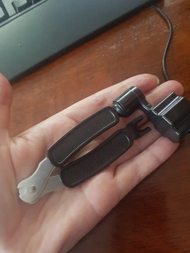 Вещь отличная, ножницы, кусачки для ногтей и прочие косметические принадлежности оставлены в покое)) доставка быстрая, струны режет на раз-два, колки крутит резво, пеньки поддевает хорошо. товаром доволен!!!
