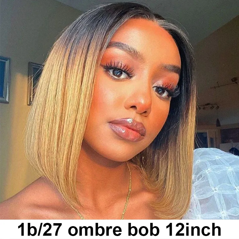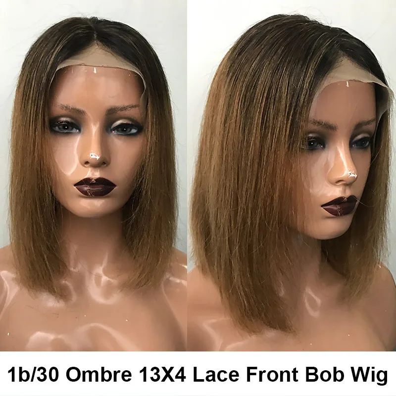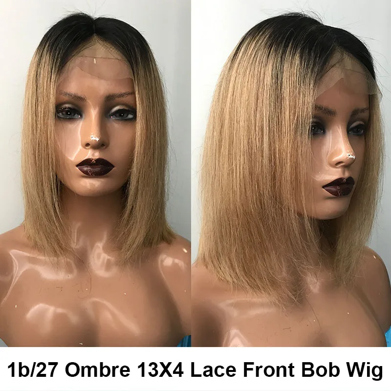Светлые короткие парики боб из натуральных волос на шнурке для женщин, прямые черные бразильские волосы Реми 1b 27 1b 30, цветные парики боб на шнурке 13X4