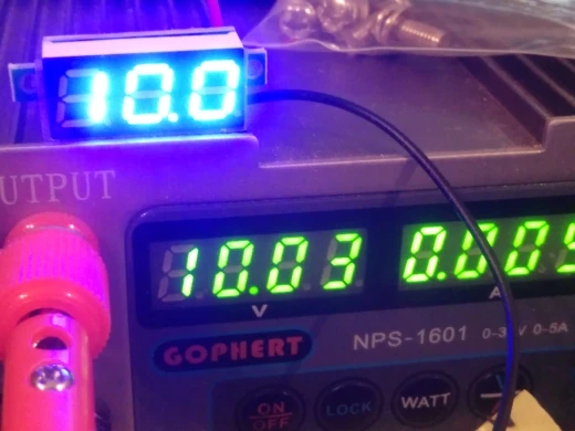 Отличный вольтметр, маленький, качественно сделанный, подстройка погрешности. Вполне неплохо измеряет, точность +- 0,1В при 5В. Брал минимальный размер,Отлично работает, особенно после тонкой подстройки (сзади есть потенциометр). цвет подсветки приятный.
