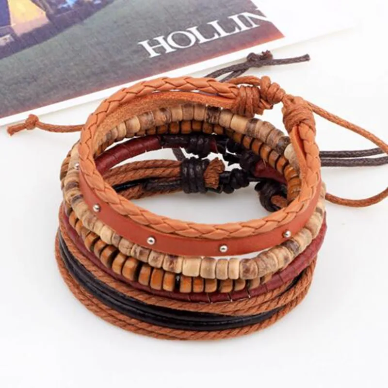 Винтажный этнический богемный Браслет из деревянных бусин ZOSHI, мужской Браслет-манжета в стиле бохо, кожаный женский браслет, мужской наручный браслет, ювелирные изделия ручной работы