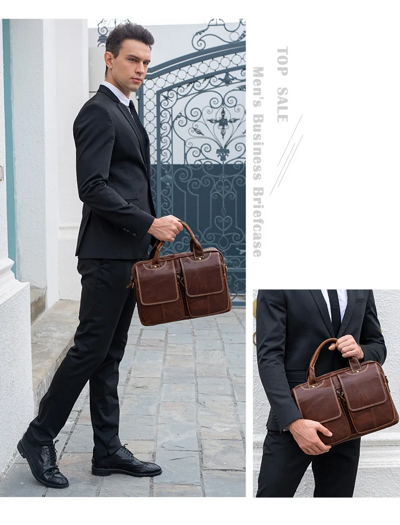 Новинка 2022, мужская сумка из натуральной кожи, портфель, модная мужская деловая сумка из кожи Крейзи Хорс, вместительная дизайнерская Высококачественная сумка для ноутбука