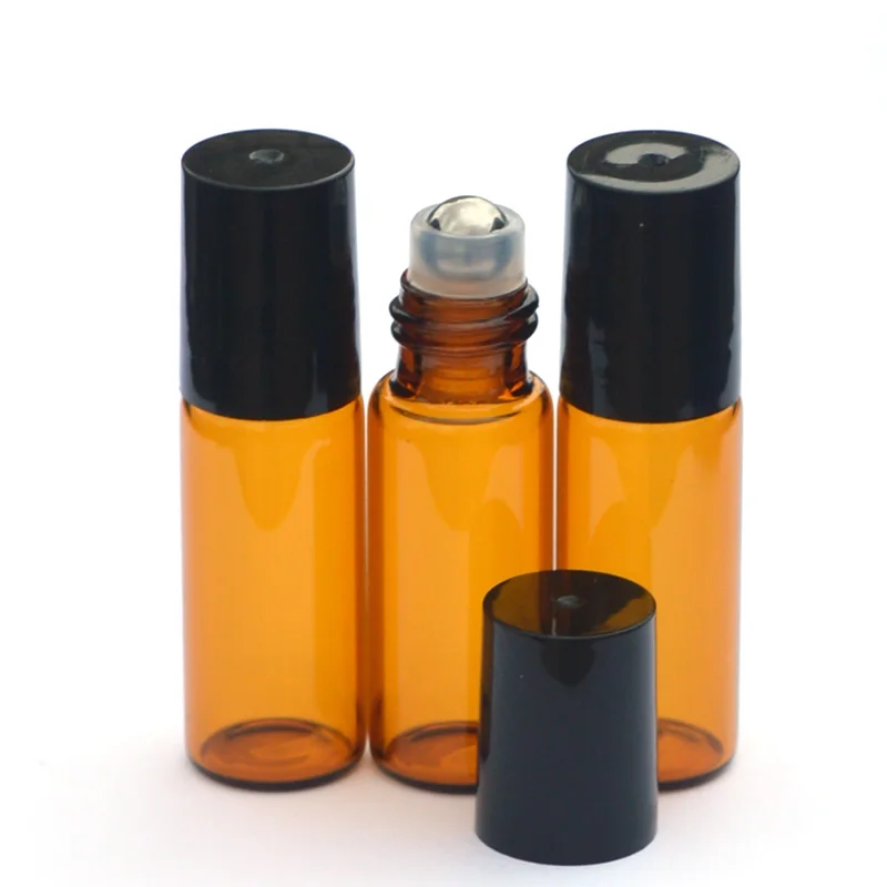 Янтарная стеклянная бутылка 5 мл, рулон на пустой аромат, парфюмерия, эфирное масло, бутылка 5 мл, рулон, черная пластиковая крышка, бутылка
