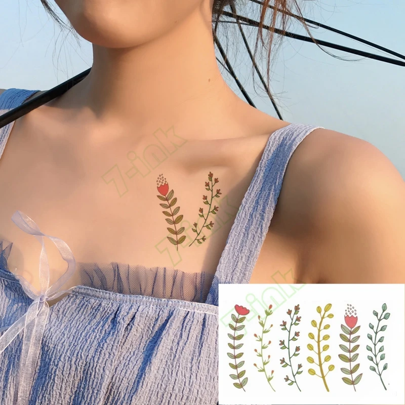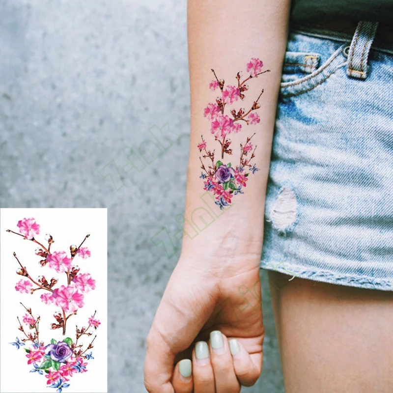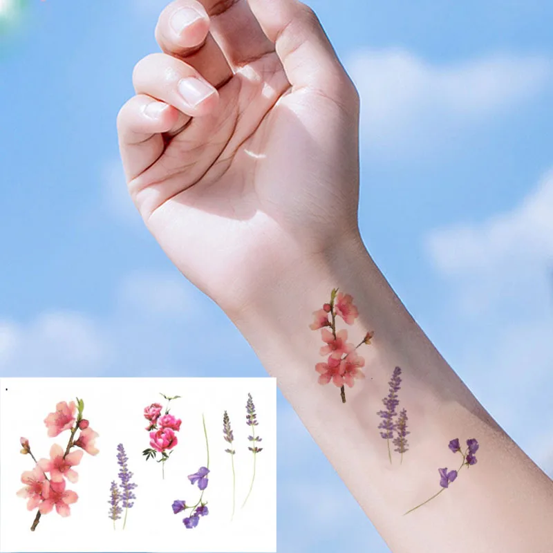 Водопереводная татуировка, красивый цветок, цветок персика, лаванда, Камелия, Харадзюку, водостойкая Временная имитация татуировки для девушек и женщин