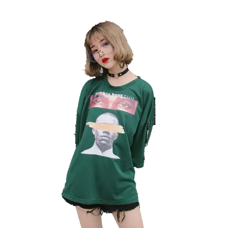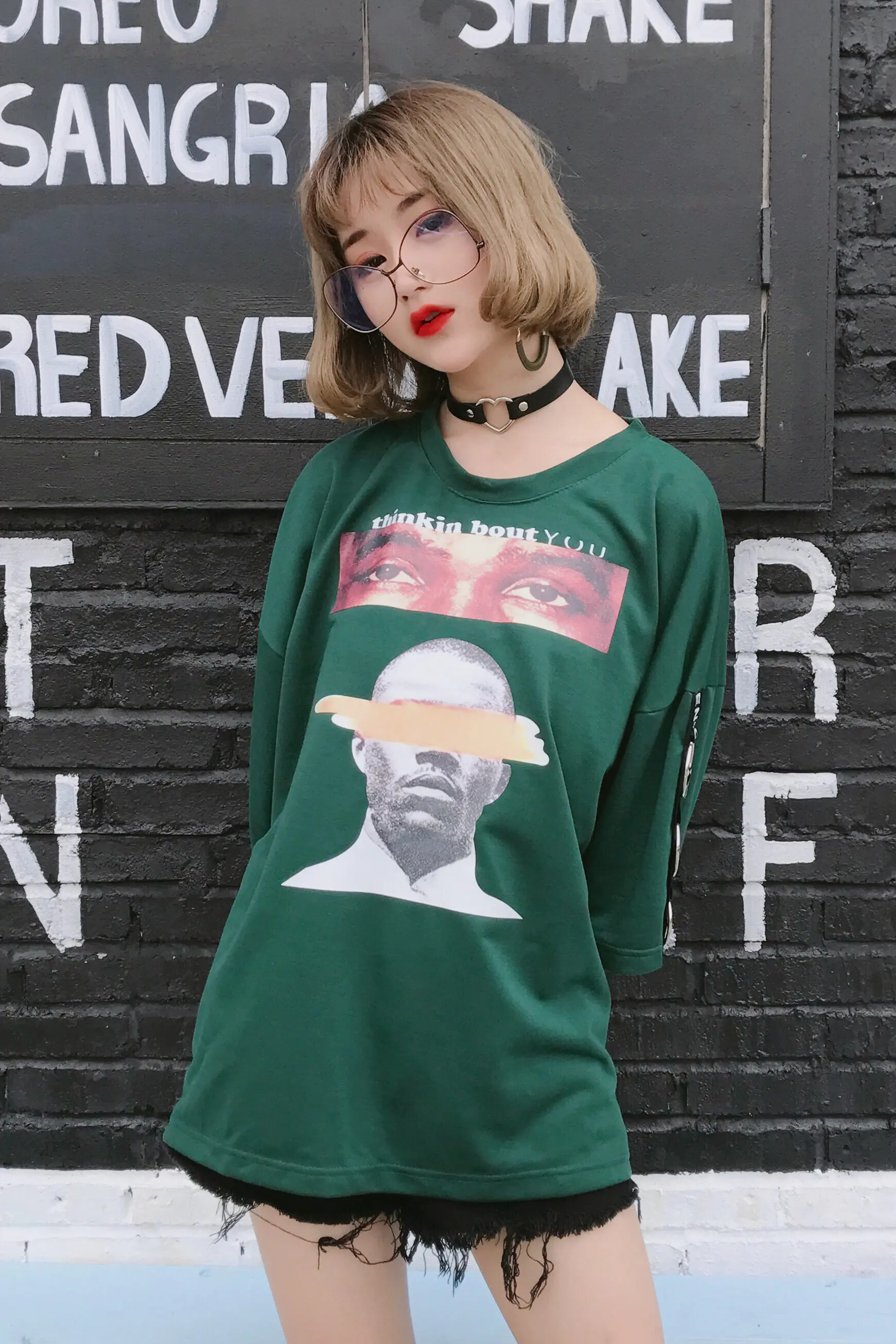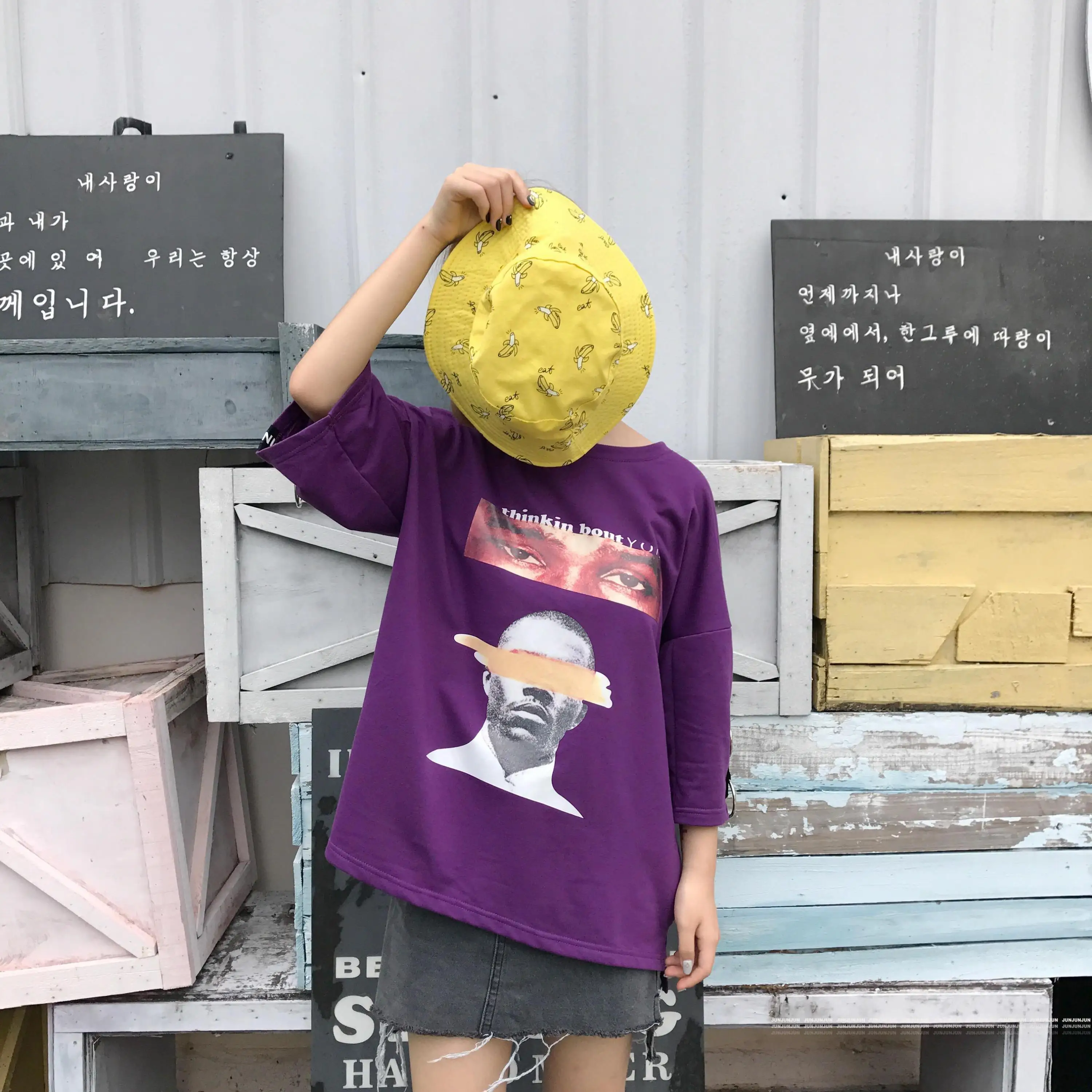 2017 Halajuku летние свободные модные Универсальные женские футболки с коротким рукавом и принтом персонажа в уличном стиле