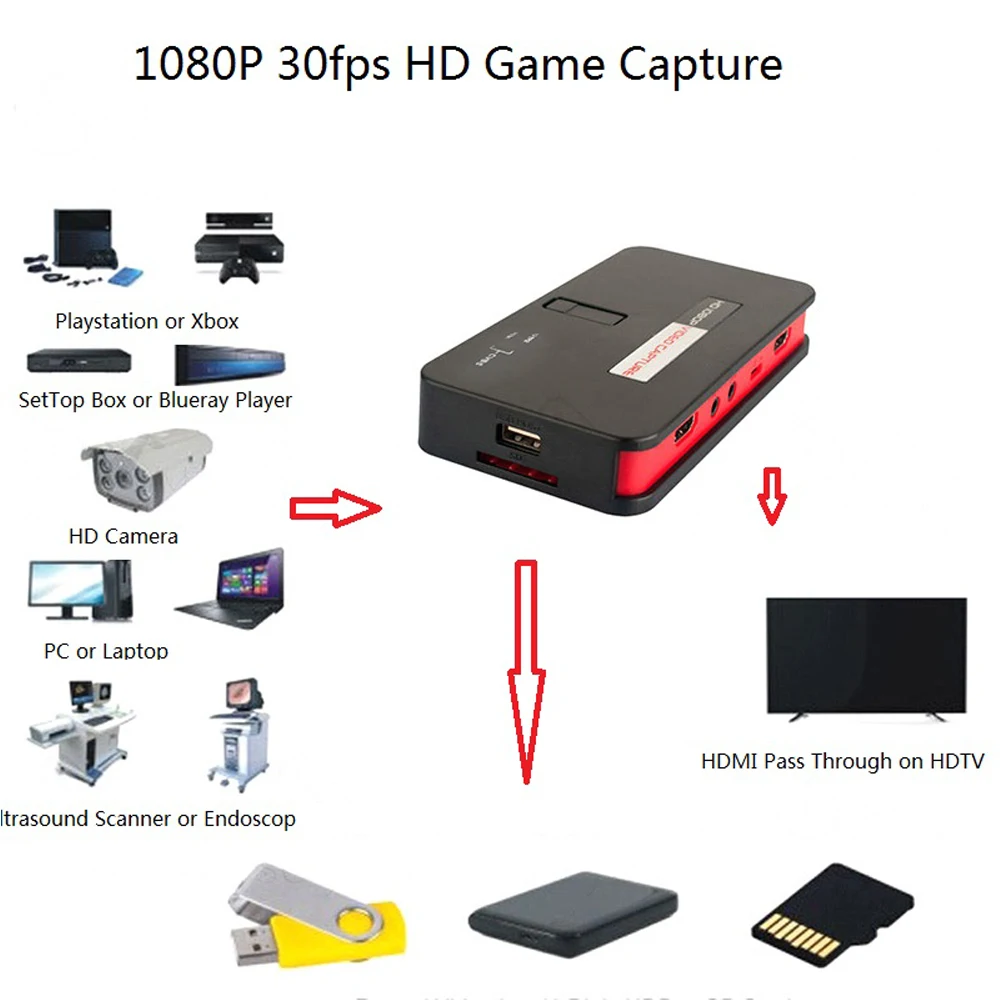 2017 Новый vhs преобразователь плеер hdmi с HDMIAVYpbpr In 1080P Rec In U флэш-диск SD TF карта для Xbox360PS3 Бесплатная доставка