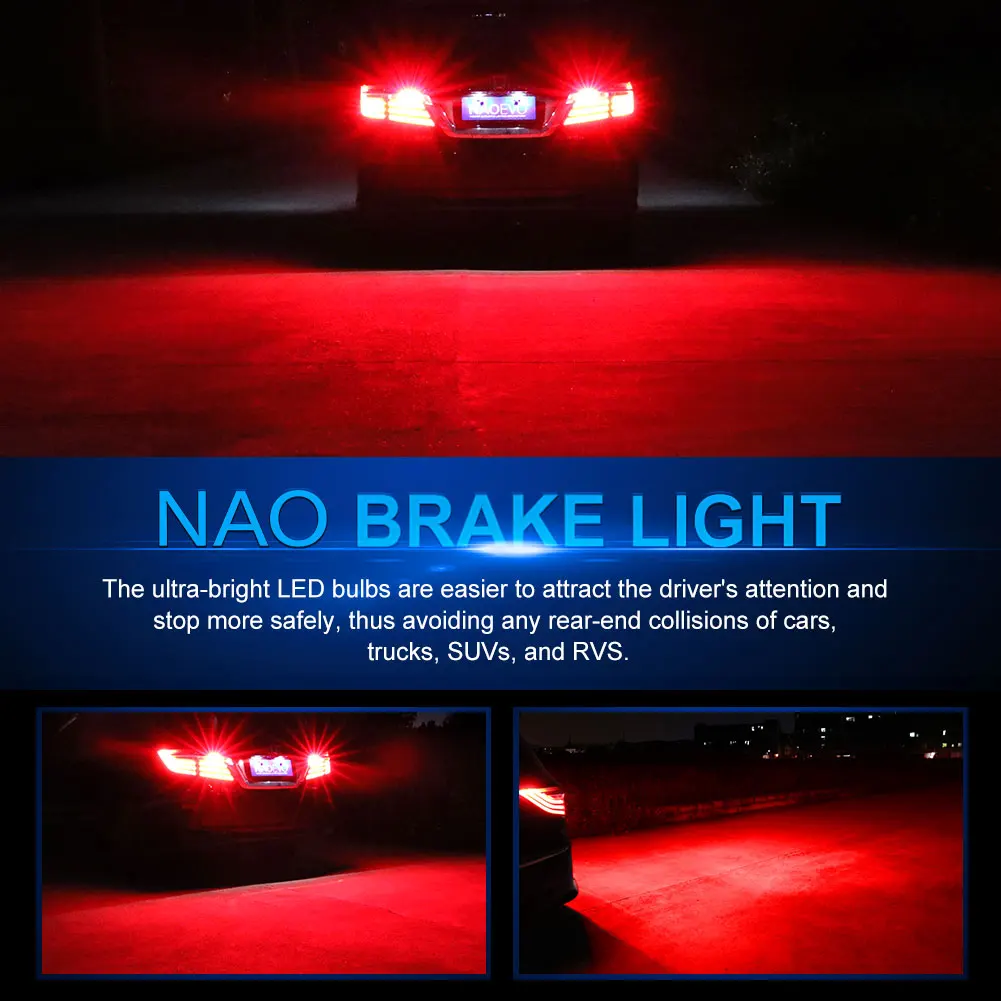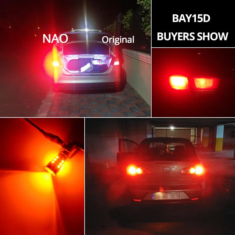 Светодиодсветодиодный автолампа NAO P21, BAY15D, стоп-сигнал 1157 красного цвета для тормозов, ДХО, задний фонарь желтого цвета, 6000K, белый Янтарный