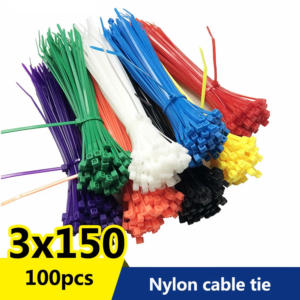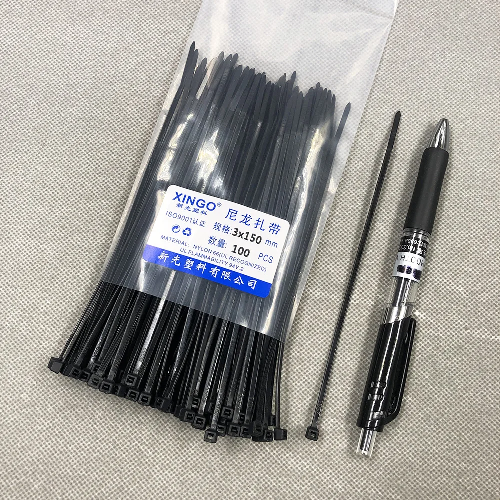 100 шт.упак. 3*150 мм, высокое качество, ширина 2,5 мм, белый, черный (национальный стандарт), самоблокирующиеся пластиковые нейлоновые кабельные стяжки, Проволочная застежка-молния